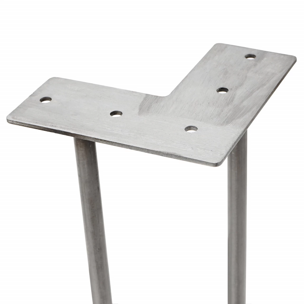 Die Tischbeine sind aus massivem Stahl gefertigt und haben eine Länge von 71 cm. Pro Tischbein sind zwei, Ø 12 mm, Streben verarbeitet.