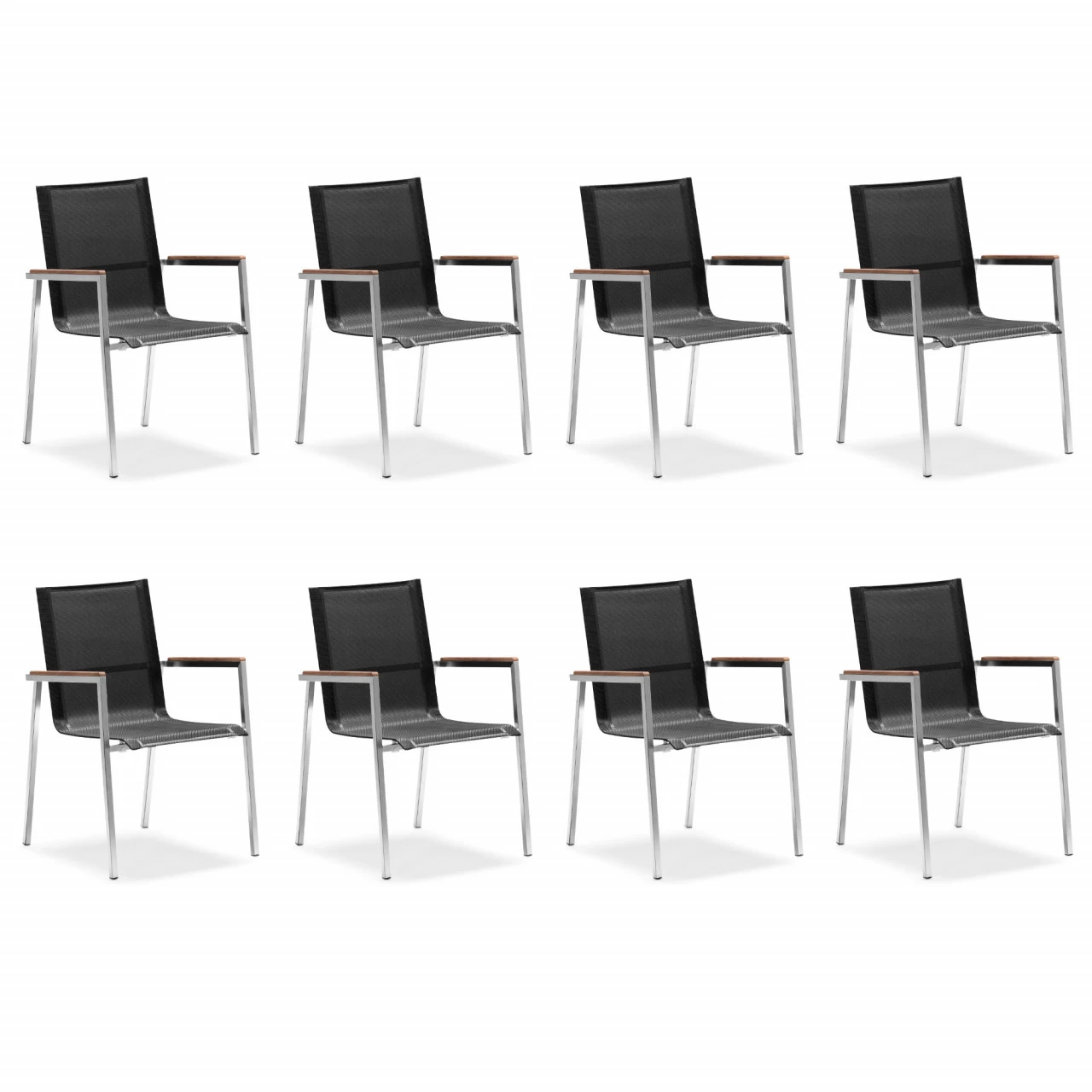 Das Wackeln hat ein Ende! Der Terrassenstuhl aus hochwertigem V2A Edelstahl ist dank seines zum Teil geschweißten Rahmens stabil und wetterfest. Das Finish ist gebürstet