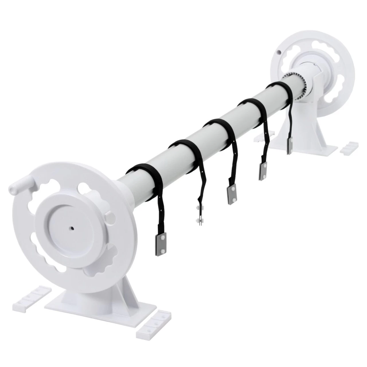 Einfaches Ab- oder Aufrollen Ihrer Abdeckplane durch eine rutschfeste Handkurbel und einem Aluminium Teleskoprohr (5-teilig). Durch die stufenlose Größenveränderung von 0 – 570 cm ist ein einfaches Verstellen des Aufrollsystems garantiert. Die 5 Befestigungsbänder mit Klammern zur Befestigung der Plane sind universell nutzbar für verschiedenste Planen (mit oder ohne Ösen). Nicht nur die Poolabdeckung, sondern auch die Solarplane können Sie mit dem Poolaufroller aufrollen. Durch die robuste Konstruktion, werden Sie noch ein langes Vergnügen mit Ihrem Pool haben.