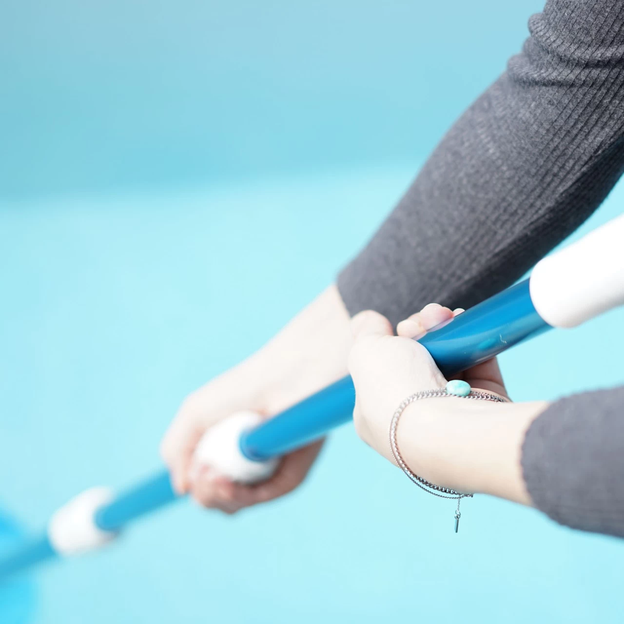 Die Poolstange ist aus eloxiertem Aluminiumrohr hergestellt und mit einer Wandstärke von 0,8 mm für den robusten Einsatz geeignet. Der komfortable Griff aus rutschfestem Gummi sorgt für einen sicheren Halt bei der Arbeit.