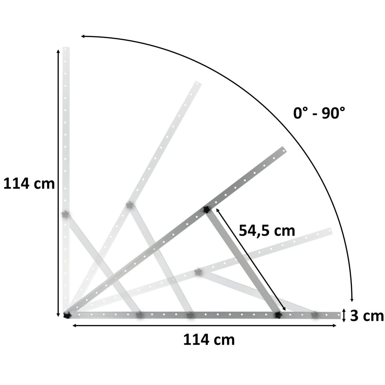 – Außenmaß: (B) 114 x (T) 3 x (H) 3-114 cm