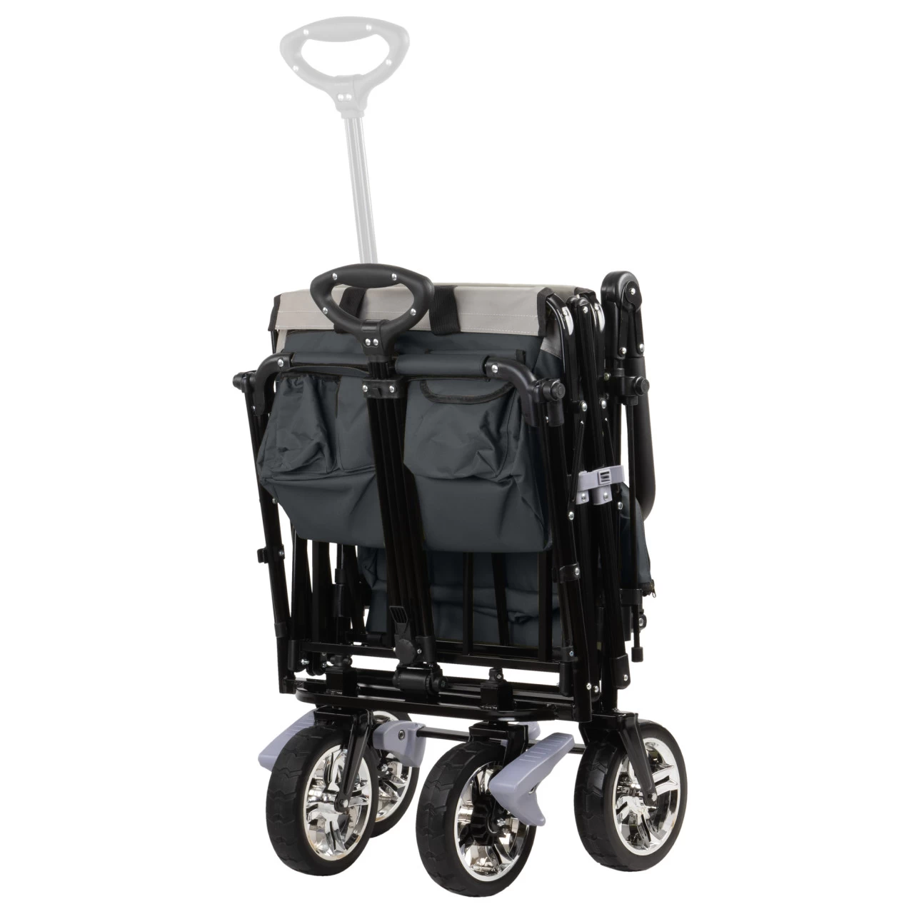 Ausgestattet mit zwei praktischen Griffen zum bequemen Ziehen oder Schieben, bietet der Handwagen eine hohe Flexibilität. Die beiden integrierten Hecktaschen am Bollerwagen sind jeweils bis zu 10 kg belastbar und bieten Stauraum für Getränke und kleinere Gegenstände, so haben Sie alles Notwendige griffbereit.