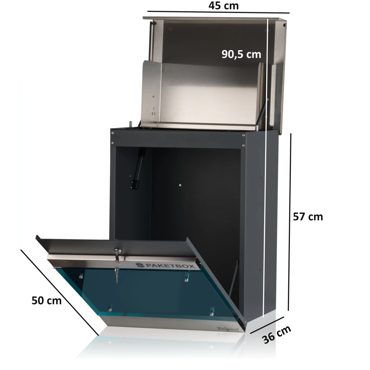 – Lieferumfang: 1x Paketbriefkasten, Montagematerial, selbstklebende Hausnummern