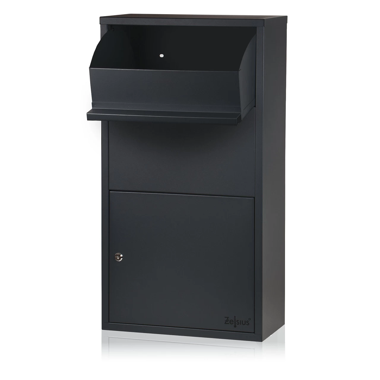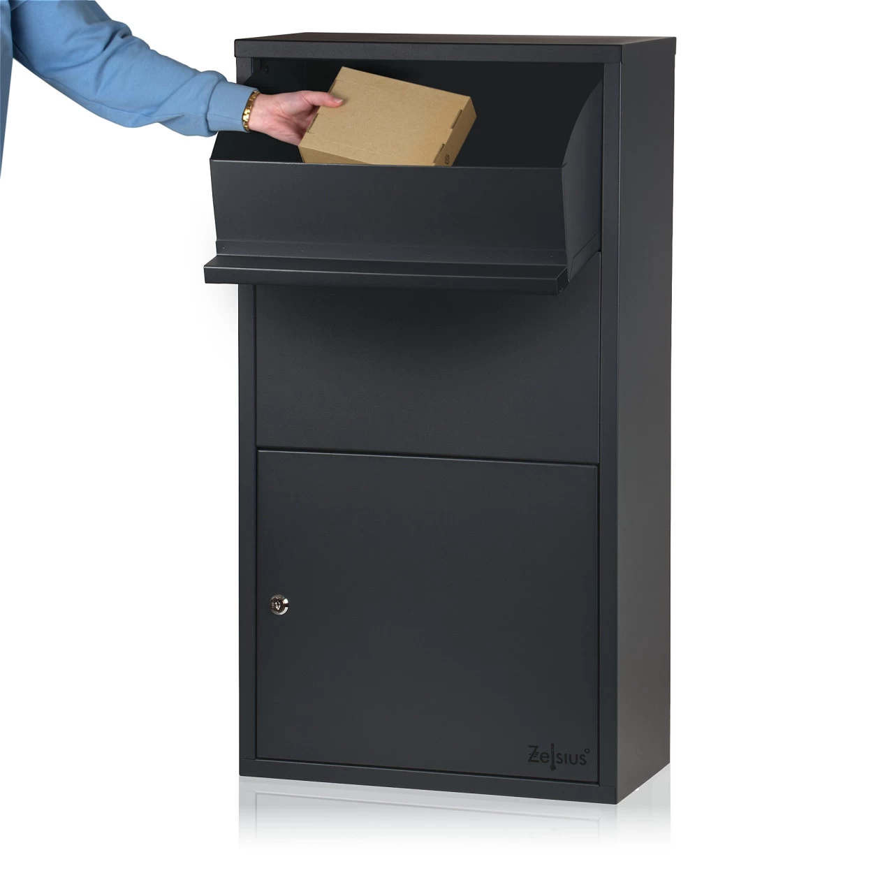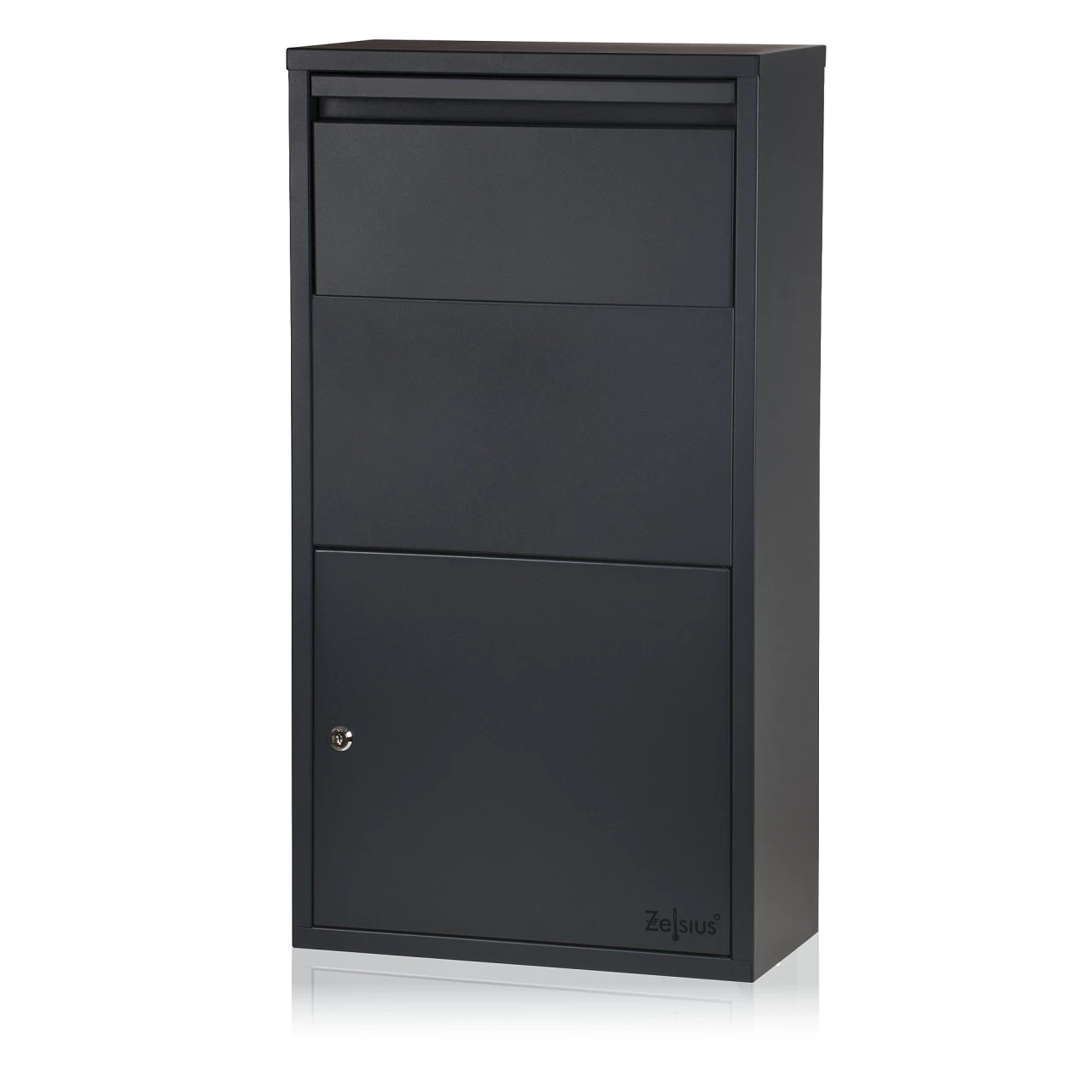 Der Paketkaste besteht aus pulverbeschichtetem Stahl, dies gewährleistet nicht nur Langlebigkeit, sondern verleiht dem Paketkasten auch eine ansprechende Optik.
