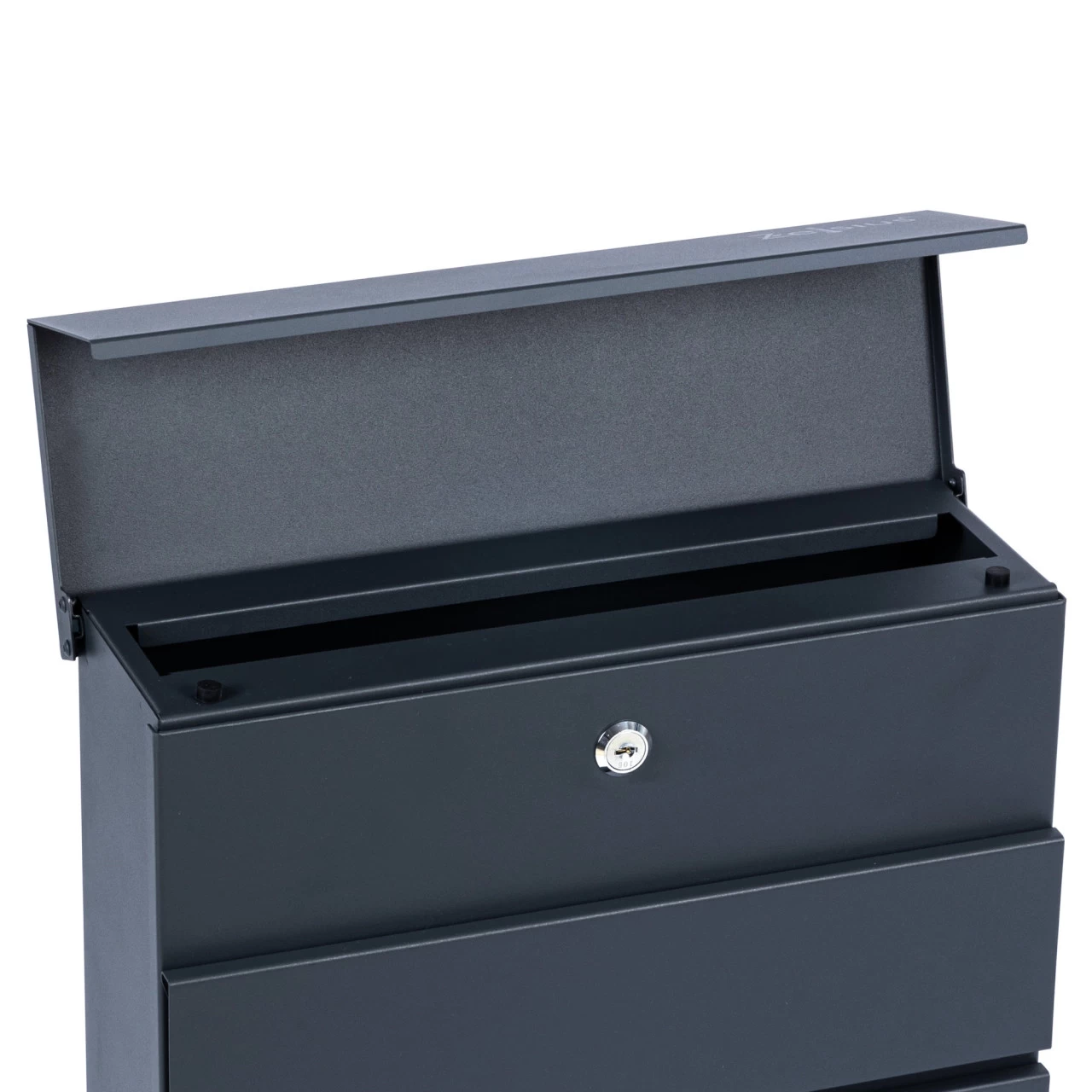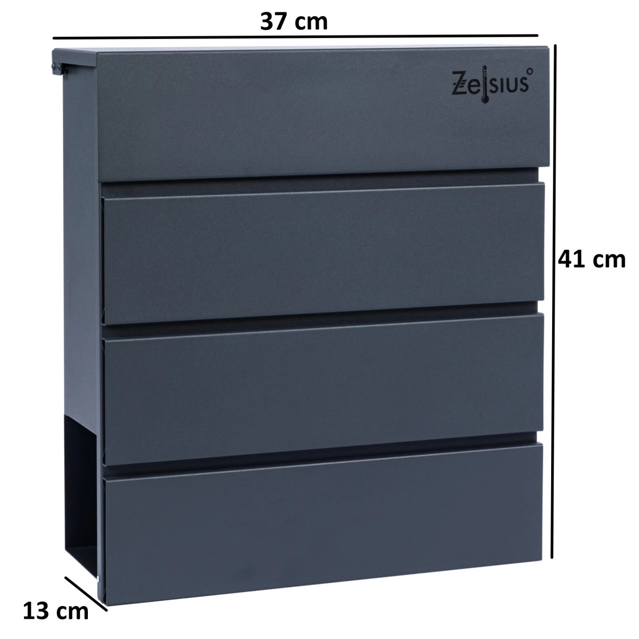 Der Zelsius Briefkasten ermöglicht eine sichere Zustellung Ihrer Post und wertet nebenbei mit seinem modernen anthrazitfarbenen Design jedes Haus optisch auf.