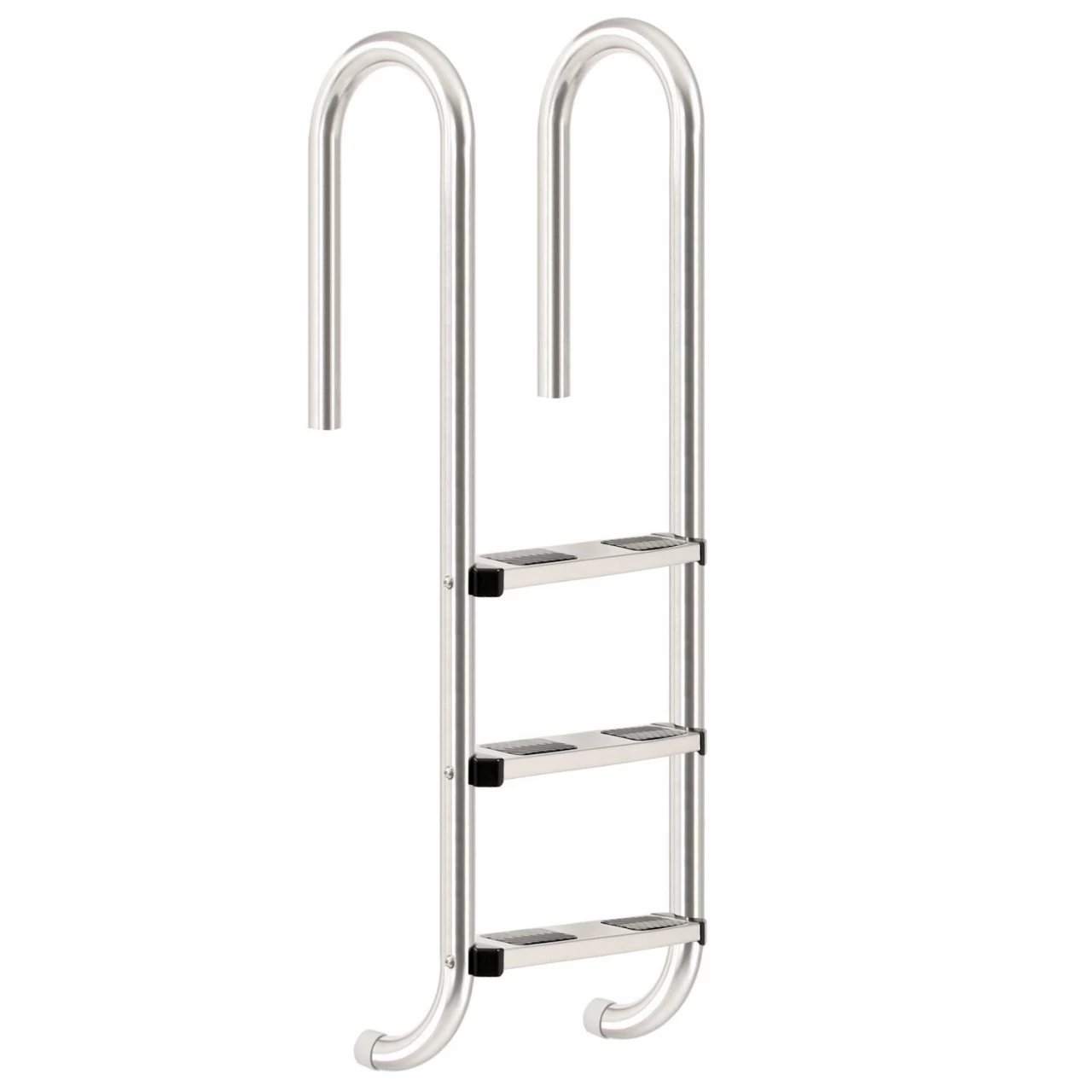Die Poolleiter ist für alle Standardbecken geeignet. Dank der mit Gummistopfen versehenen Handläufe liegt die Schwimmbadleiter ideal am Beckenrand und verkratzt diesen nicht. Dank der breiten Stufen bietet die Poolleiter einen komfortablen Ein- und Ausstieg aus Ihrem Schwimmbecken oder Pool. Die rutschhemmenden Trittstufen sind mit Gummipads ausgestattet. Im Lieferumfang sind Befestigungshülsen enthaltenen, welche eine Montage auf Beton oder anderen Oberflächen ermöglichen. Somit ist die Schwimmbeckenleiter fest verankert und bietet einen sicheren Halt.