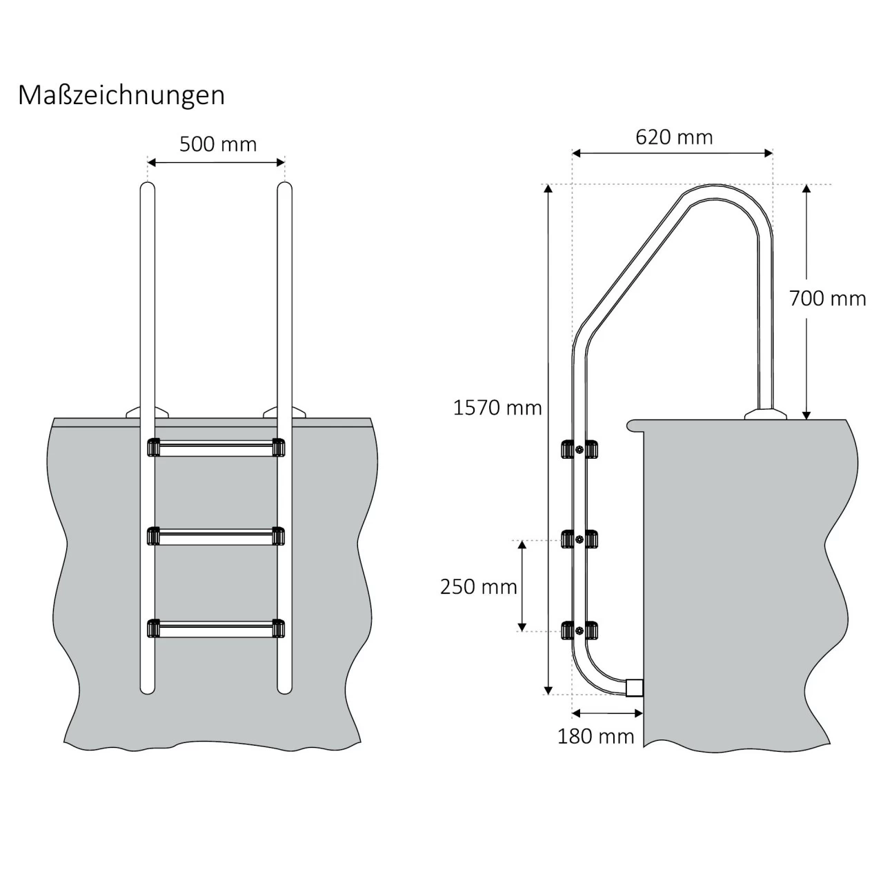 – Lieferumfang: Poolleiter mit 3 Stufen und Befestigungsbolzen, Aufbauanleitung