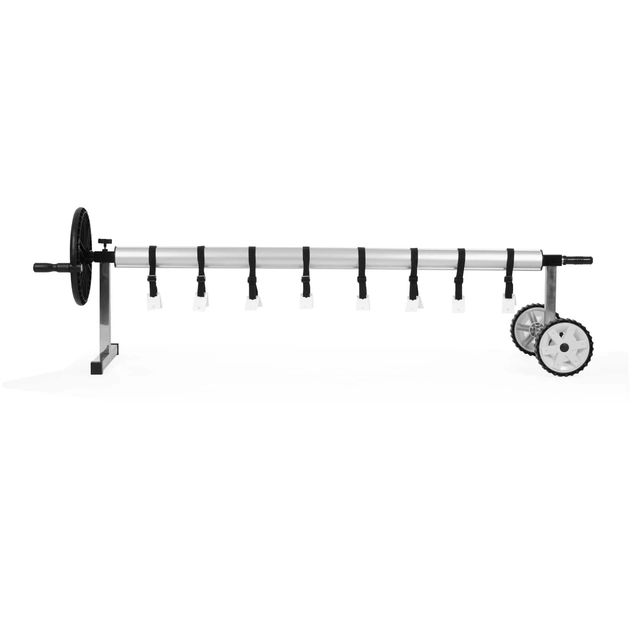 Die 8 Befestigungsbänder mit Klammern zur Befestigung der Plane sind universell nutzbar für verschiedenste Planen (mit oder ohne Ösen). Nicht nur die Poolabdeckung, sondern auch die Solarplane können Sie mit dem Poolaufroller aufrollen.