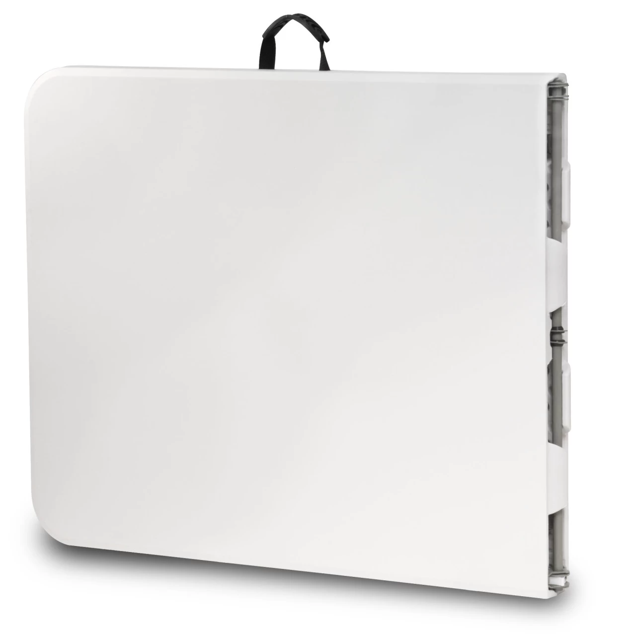 Der Klapp-Tisch besitzt zusätzlich einen elastischen Tragegriff, damit kann der Tisch mühelos transportiert werden. Die Tischplatte aus Kunststoff ermöglicht eine mühelose Reinigung.