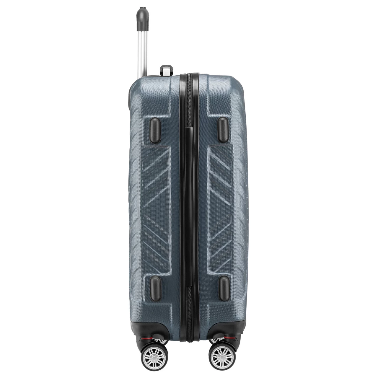 Das Koffer dreier Set wurde mit dem Fokus auf Komfort und Funktionalität entworfen. Der höhenverstellbare Aluminium-Teleskopgriff ermöglicht es den Koffer mühelos zu ziehen. Die 4 schwenkbaren Doppelrollen machen das Manövrieren zum Kinderspiel, egal ob der Koffer durch die engen Gänge eines Flughafens oder über einen unebenen Untergrund gezogen wird. Zusätzlich zu dem Tragegriff oben verfügt er über einen seitlichen Griff für mehr Flexibilität beim Heben und Tragen.
