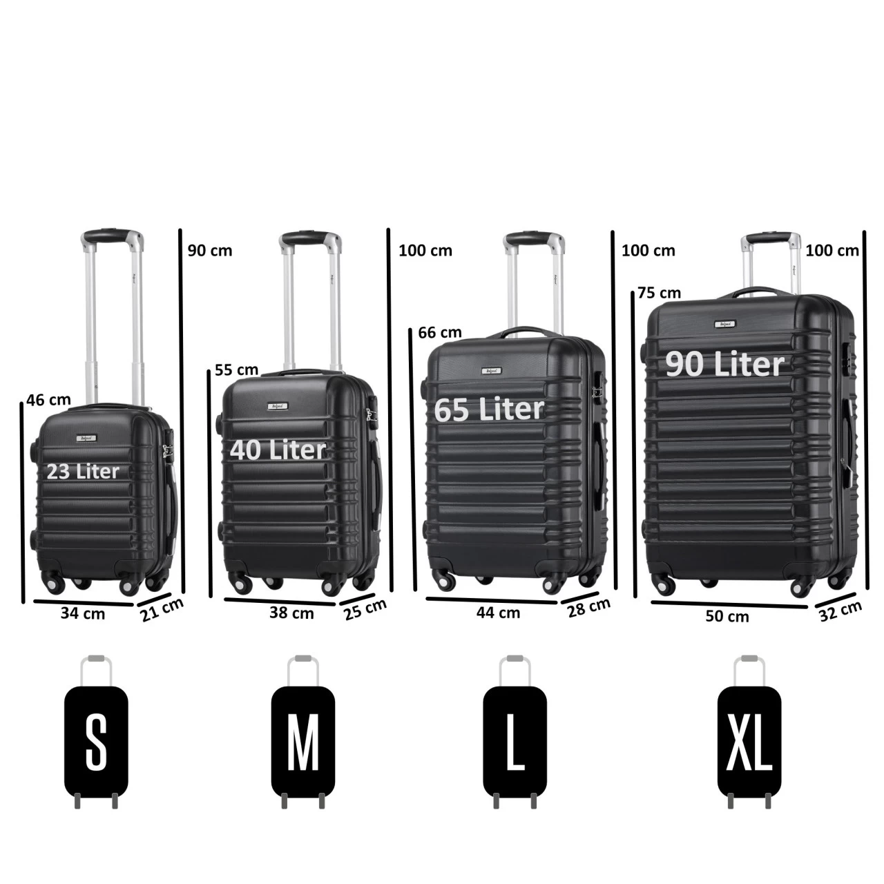 Das 4-teilige Koffer Set mit verschiedenen Größen ist das perfekte Set für jede Reise. Egal ob für eine Fernreise (Größe XL), eine Bahn-/Autoreise (Größe L), einen Wochenendtrip (Größe M) oder für Tagestrips bzw. Kosmetika (Größe S), für jede Gelegenheit den passenden Koffer! Außerdem lassen sich die Koffer ineinander aufbewahren und können so platzsparend gelagert werden.