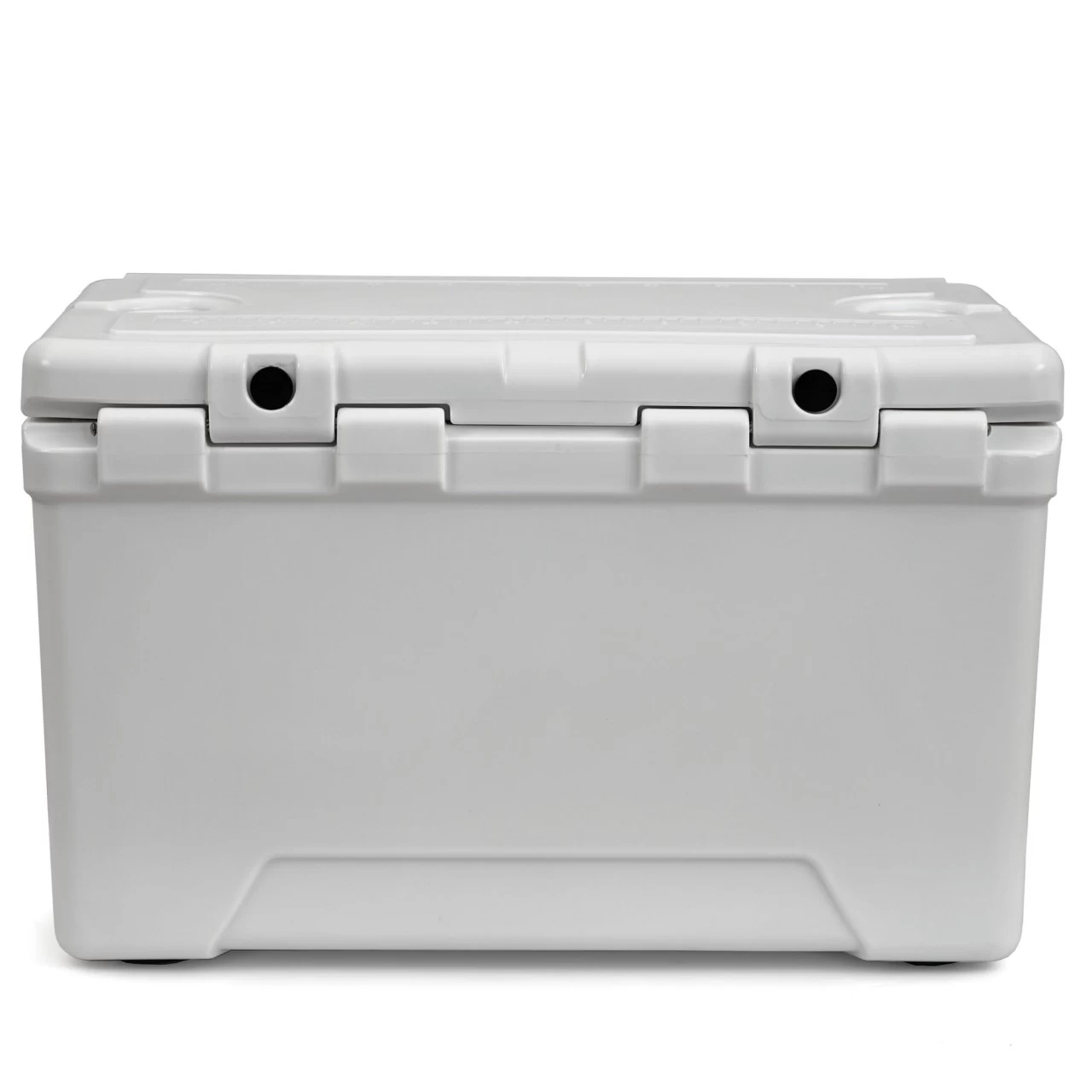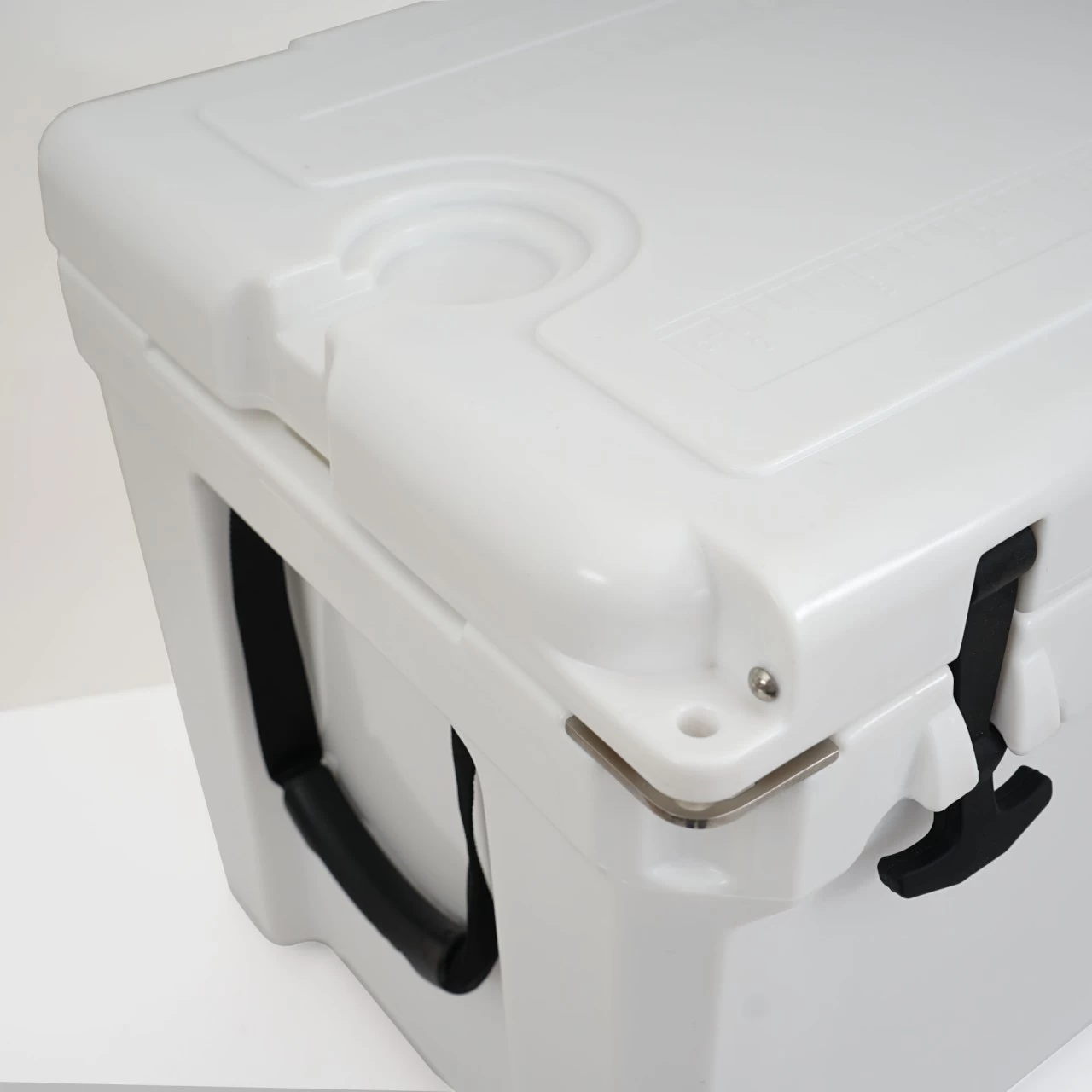 Die vielen Details wie Getränkemulden und Ablagefläche auf dem Deckel, Flaschenöffner an zwei Ecken, sicherer Verschluss durch ein Vorhängeschloss, vier rutschfeste Gummifüße, verschließbarer Abfluss sowie der vorhandene Schlitz für einen Innenraumtrenner, machen die handliche und leichte Kühlbox zu einem praktischen Begleiter im Alltag.
