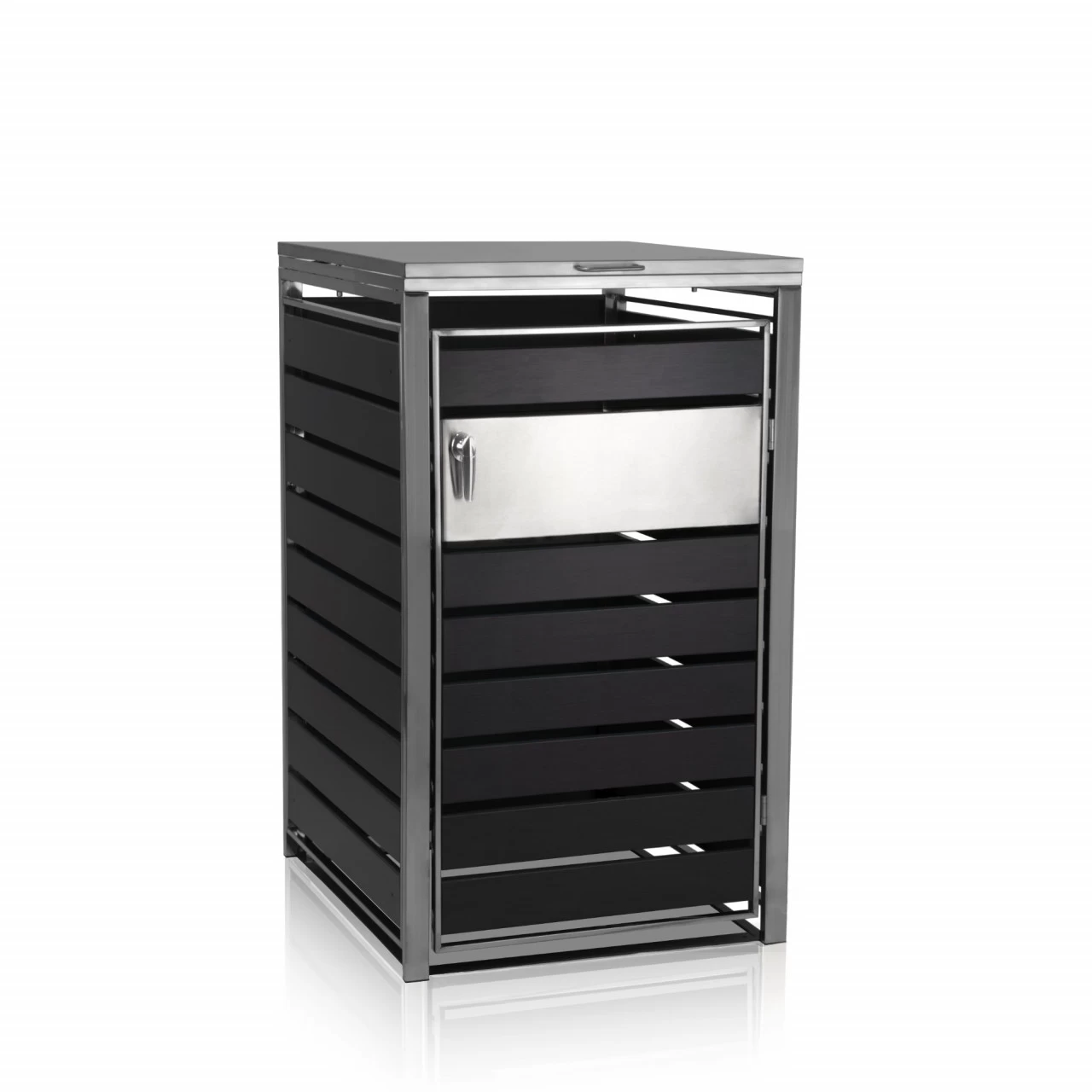 Die Müllbox ist aus hochwertigem verzinktem Stahl und der Rahmen der Box aus Edelstahl hergestellt und dadurch robust und langlebig. Die Luftschlitze in der Tür sorgen für eine gute Belüftung und ein zeitloses Design. Die Box verdeckt und schützt die Mülltonnen in Ihrem Garten und schafft somit eine saubere und gleichzeitig schöne Umgebung.