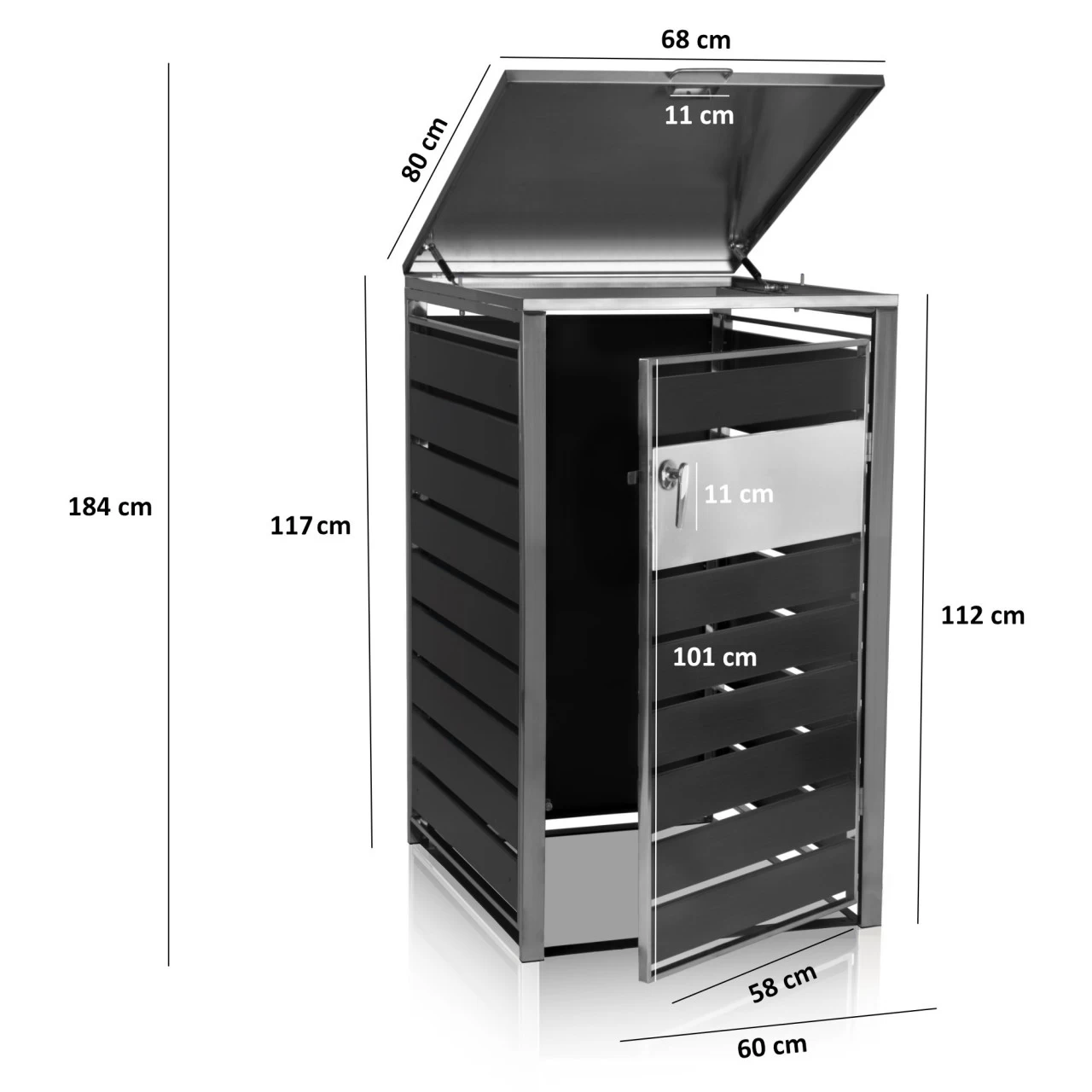 – Maße Öffnung vorne: (B) 60 x (H) 112 cm