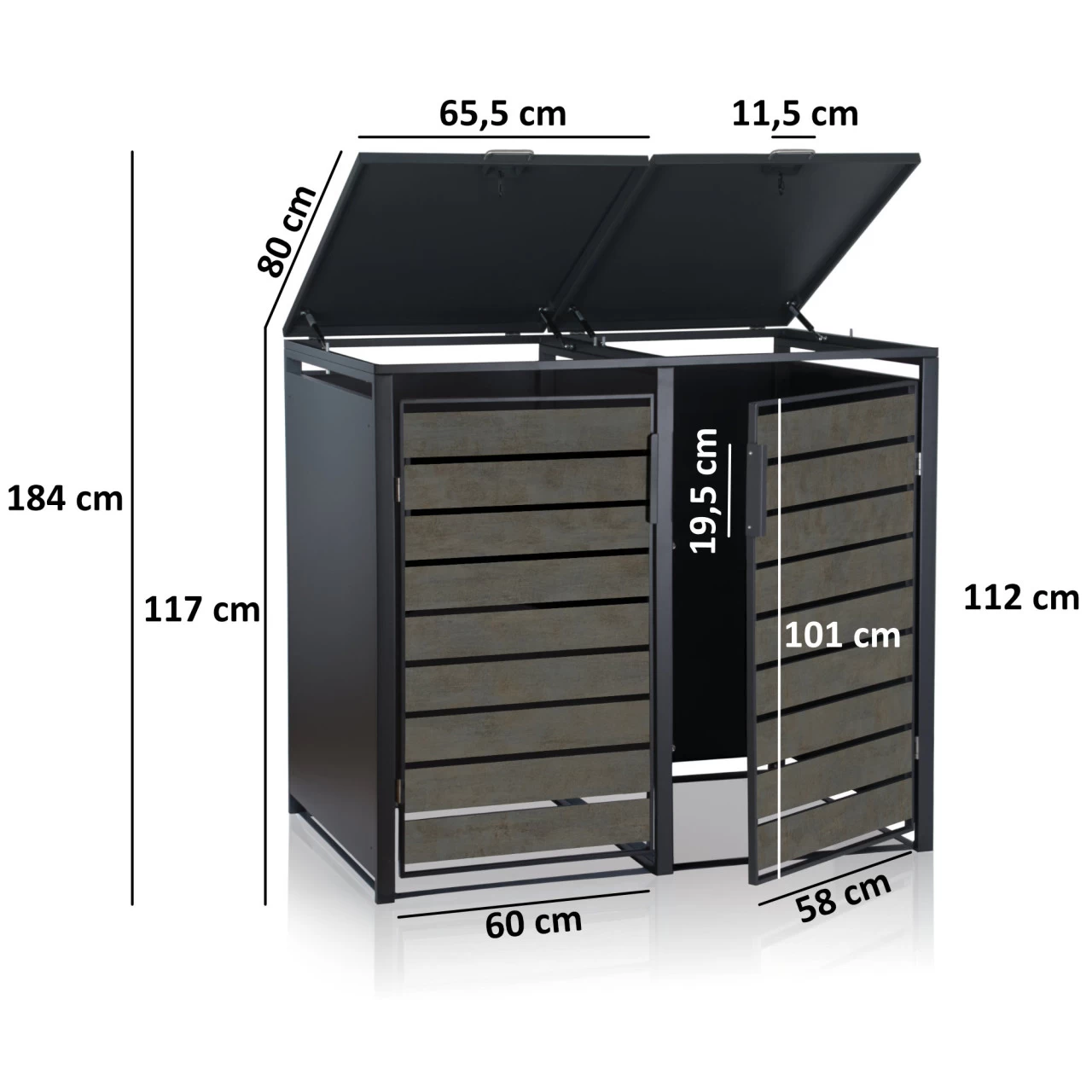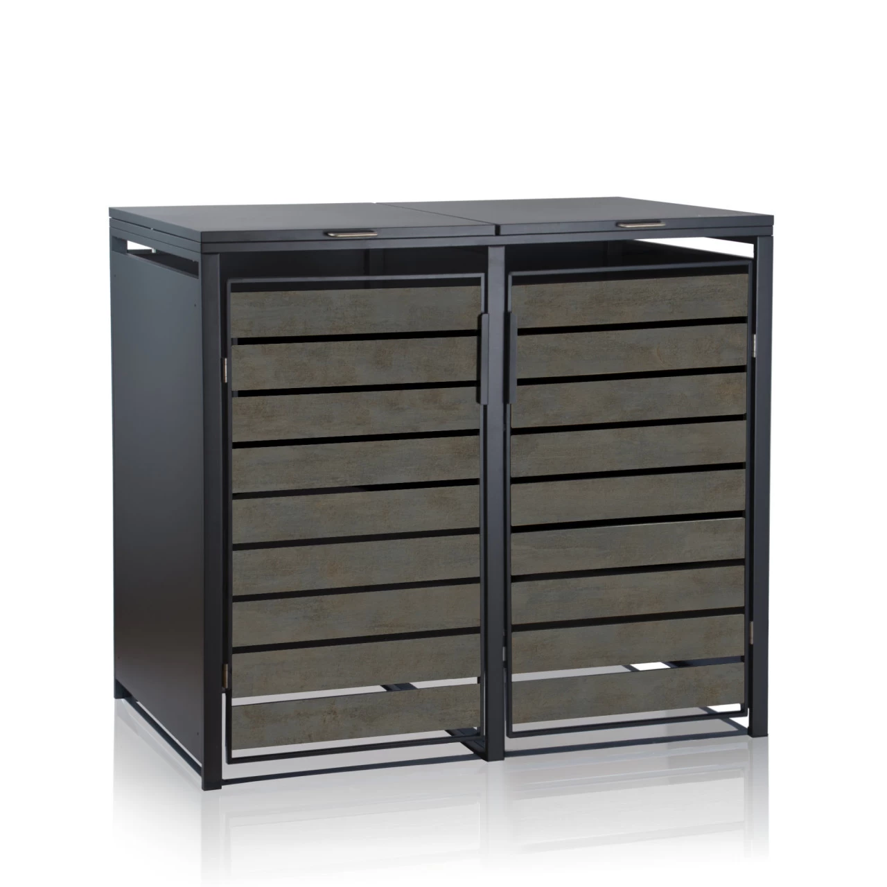 Unser Zelsius Mülltonnenkasten bietet Platz für zwei 120 – 240 Liter Tonnen und wertet nebenbei durch das ansprechende Design Ihre Hauseinfahrt optisch auf. Die Vorderseite der Türen glänzen in einem ansprechenden Holzdesign.