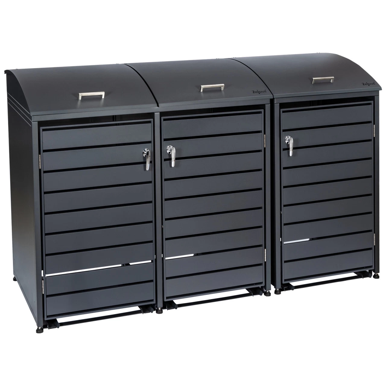 Unser Zelsius Mülltonnenkasten bietet Platz für drei 120 – 240 Liter Tonnen und wertet nebenbei durch das ansprechende Design Ihre Hauseinfahrt optisch auf.