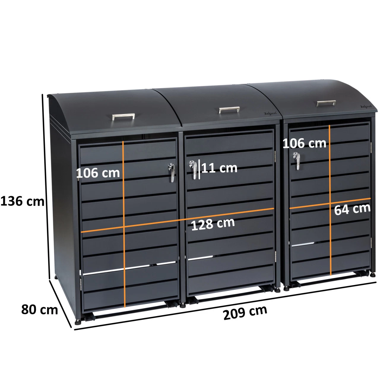 – Ideal für: 3 Tonnen à 120 – 240 Liter