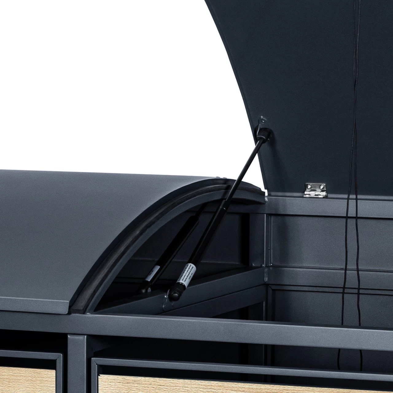 An den Fronttüren der Box befindet sich ein 16 cm großer Griff, der das Öffnen und Schließen der Tür erleichtert. Zusätzlich befindet sich im Lieferumfang eine Schnur, mit der Sie den Deckel Ihrer Mülltonne einfach an dem Deckel der Müllbox befestigen können. Dadurch werden beim Öffnen automatisch beide Deckel zusammen geöffnet.