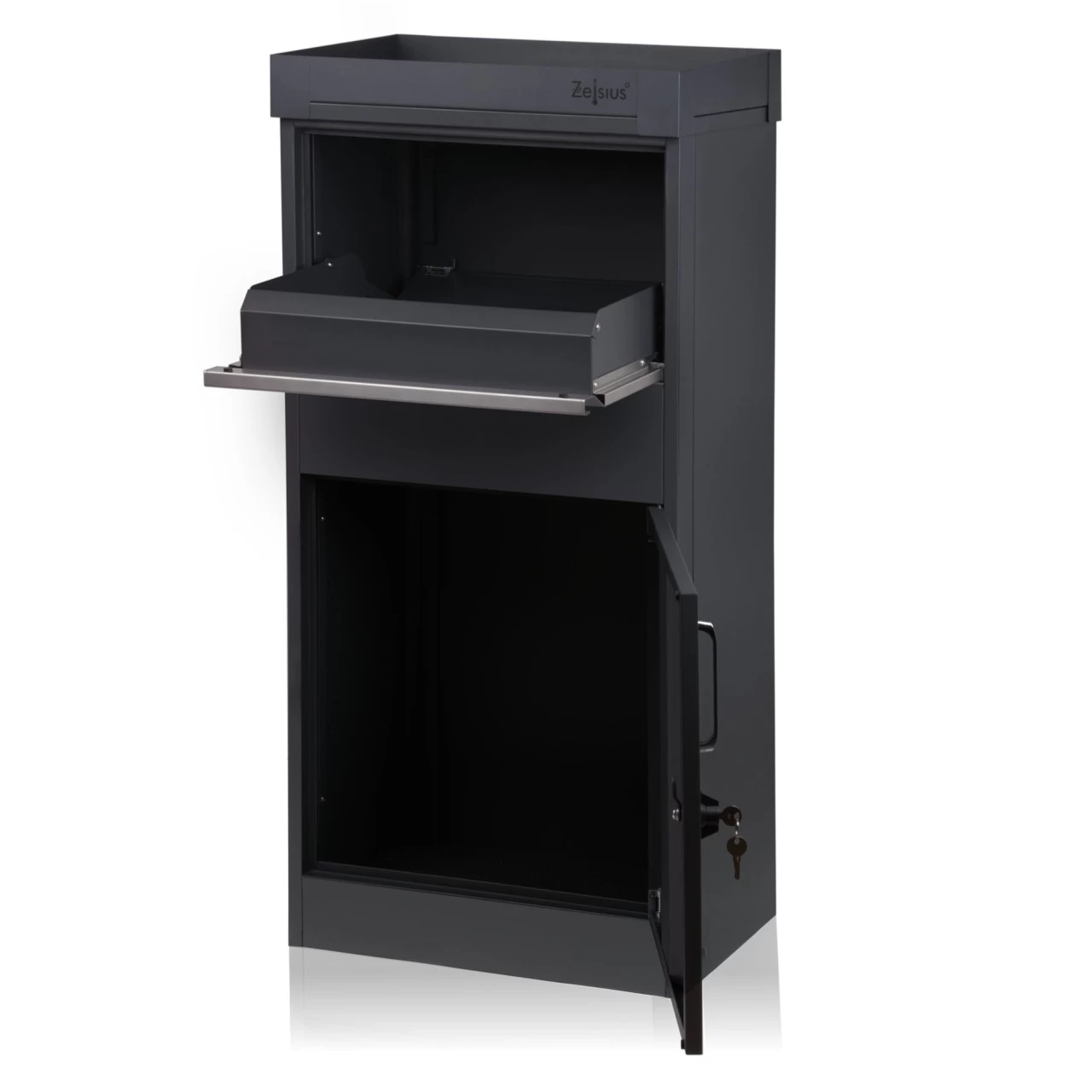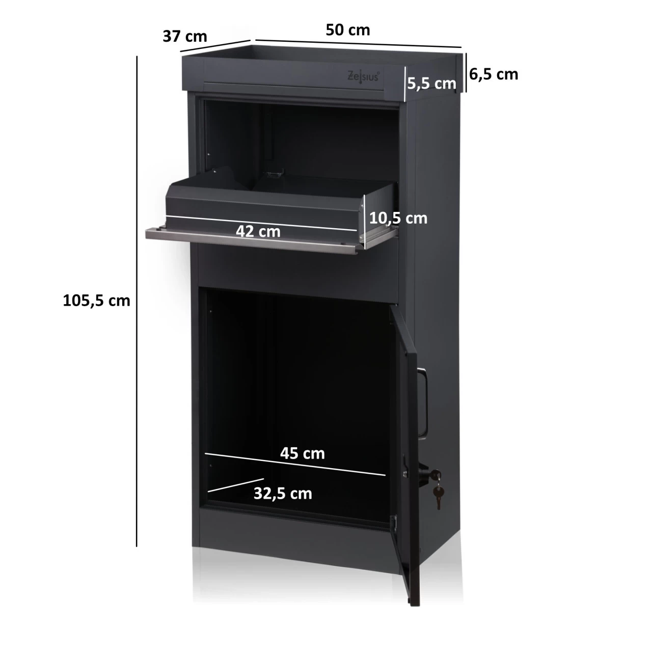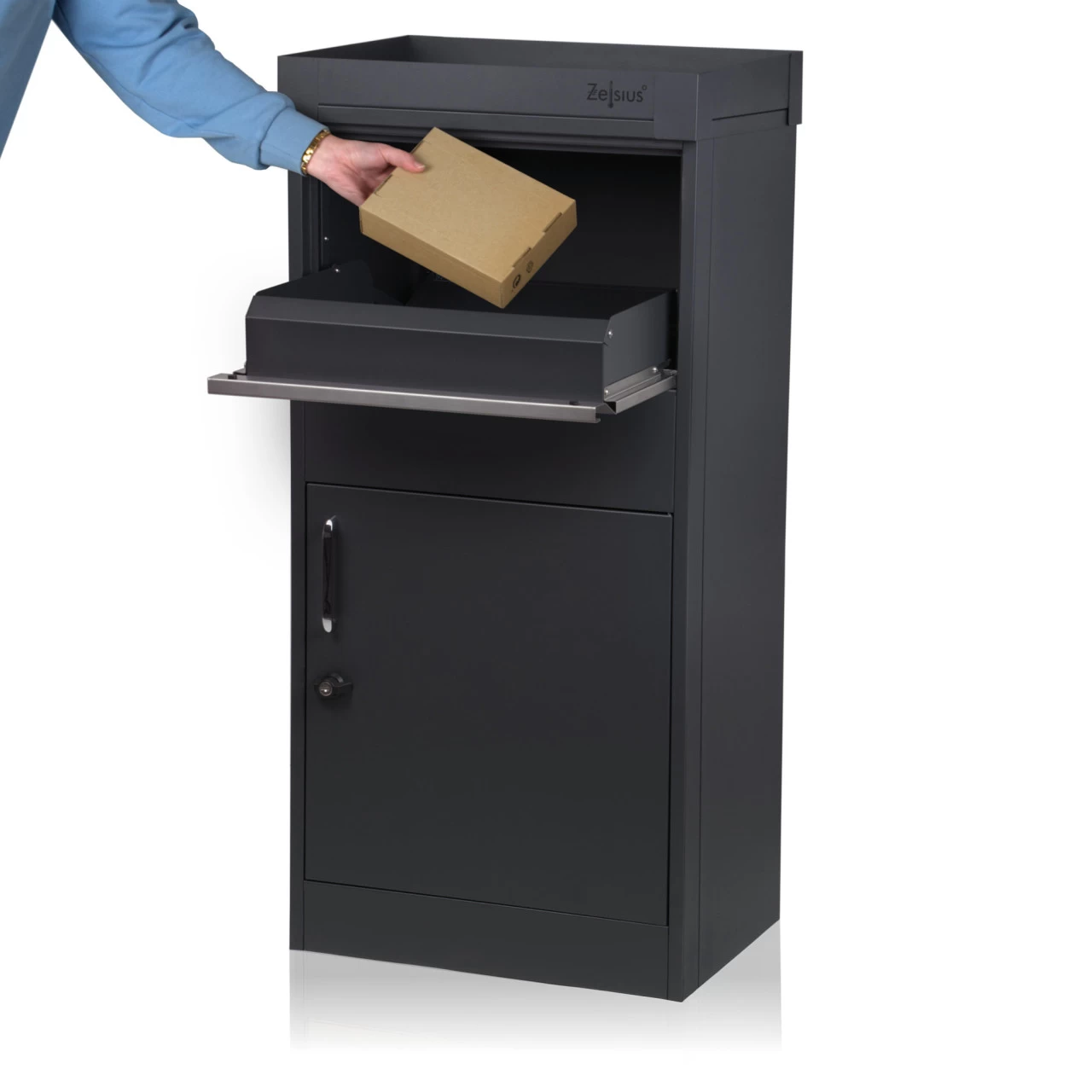 Der Stahl Paketbriefkasten besteht aus einem großen Paketfach, in dem Briefe, Zeitungen und auch kleinere Pakete eingeworfen werden können. Durch den Paketpostkasten ist die Paketzustellung zukünftig für Sie noch einfacher und bequemer.