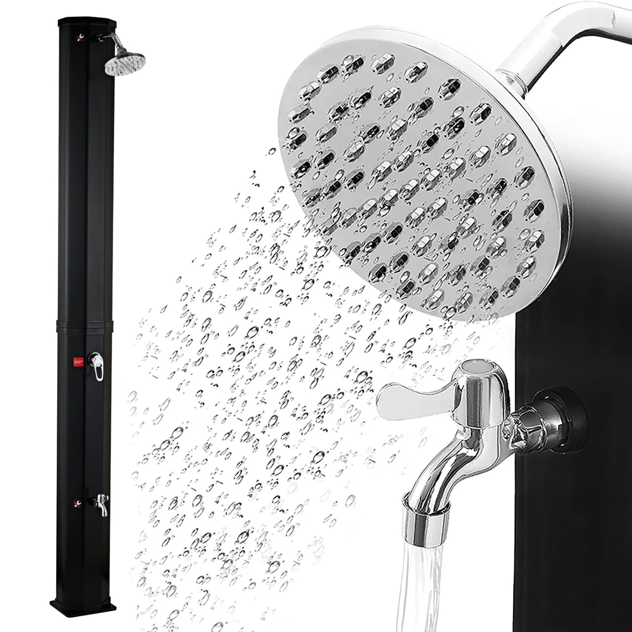 Sie können die Solardusche schnell und einfach an jeden handelsüblichen Gartenschlauch anschließen. Durch ihre Bauweise fasst der Tank der Solar Gartendusche 60L. Bei optimaler Sonneneinstrahlung wird das Wasser ganz ohne Strom auf bis zu 60° erhitzt. Ideal für Ihren Pool, Garten oder beim Camping.