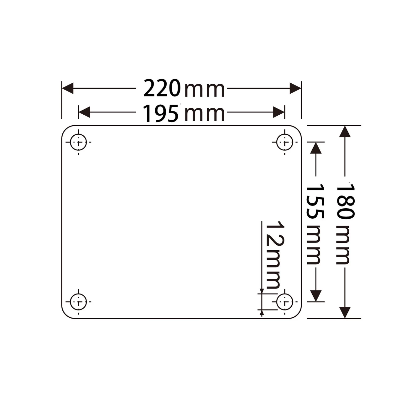 – Lochabstand Bodenplatte: 195 mm x 155 mm