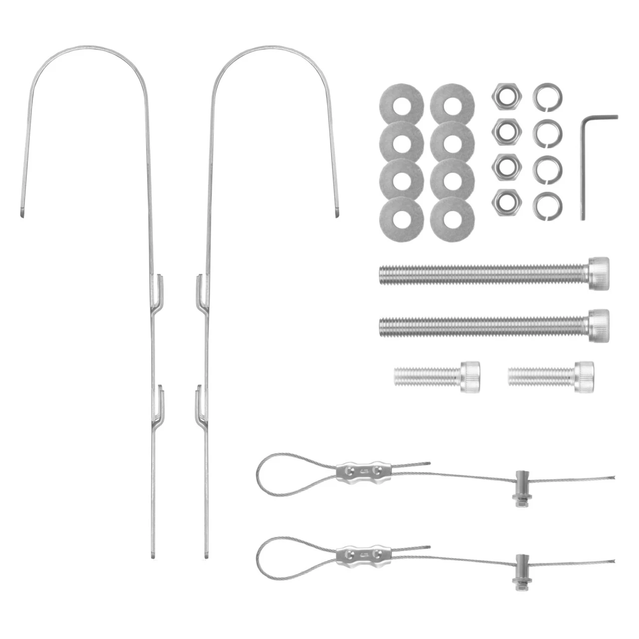 – Lieferumfang: 2x Befestigungshaken, 2x Stahlseile, Montagematerial