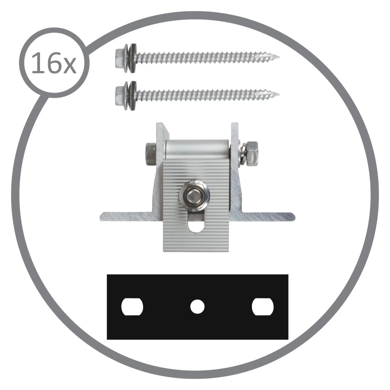 – Lieferumfang: 16x Bodenhalterungen, 16x Unterlegmatten, Montagematerial