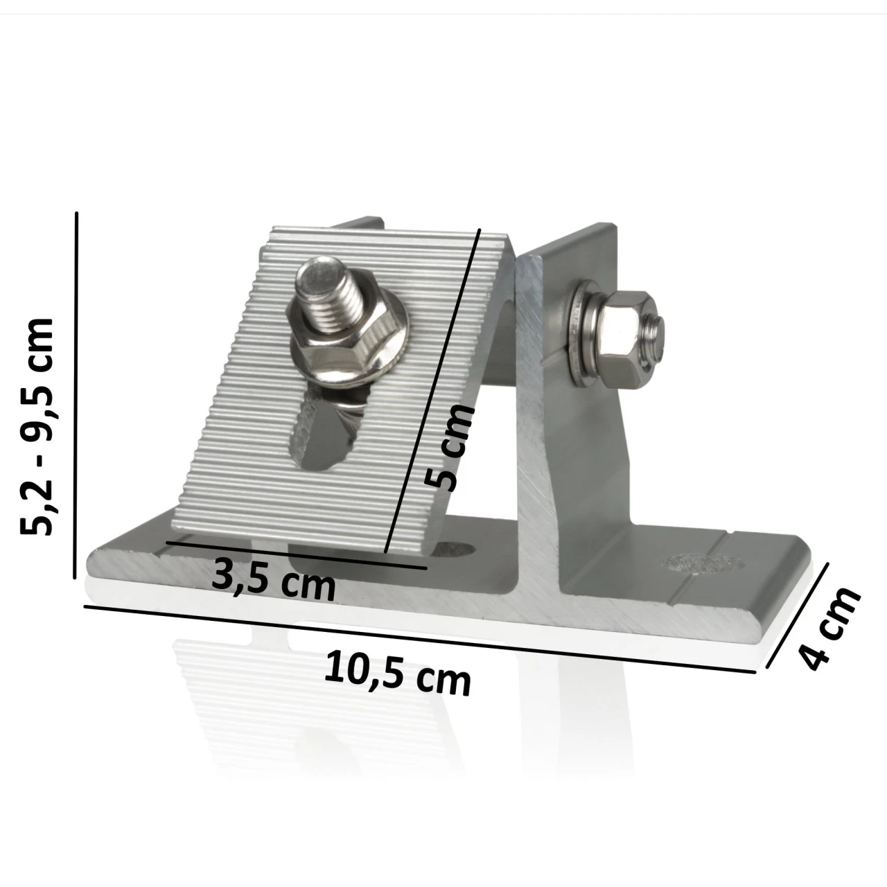 Die flexibel verstellbare Solarpanel Halterung von Zelsius dient als Befestigung für gerahmte Solarpanele und lässt sich auf viele verschiedene Solarmodul-Größen anpassen. Die Befestigung ist ideal für Flachdach, Carport, Wohnmobil, Garage und andere ebene Untergründe geeignet.