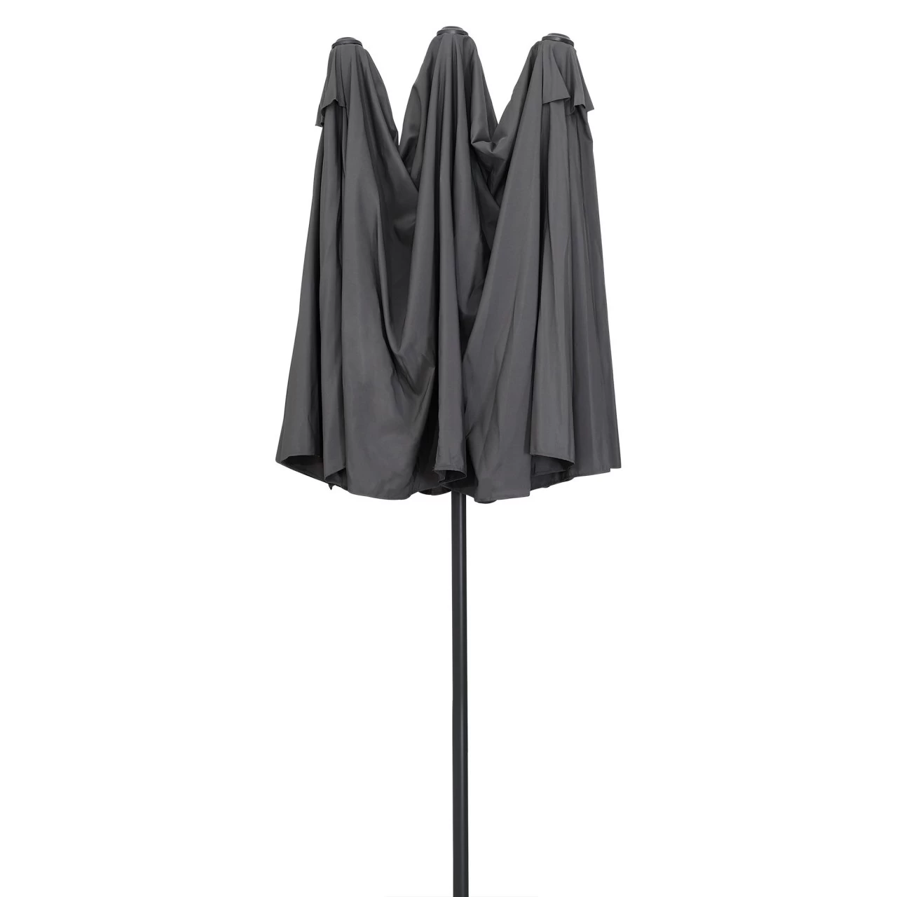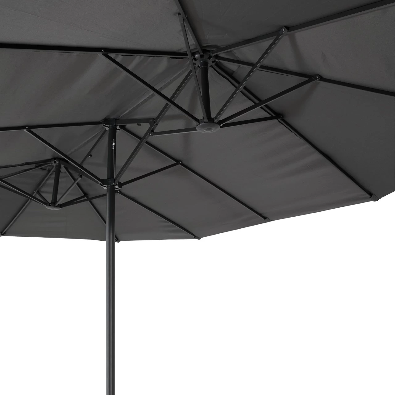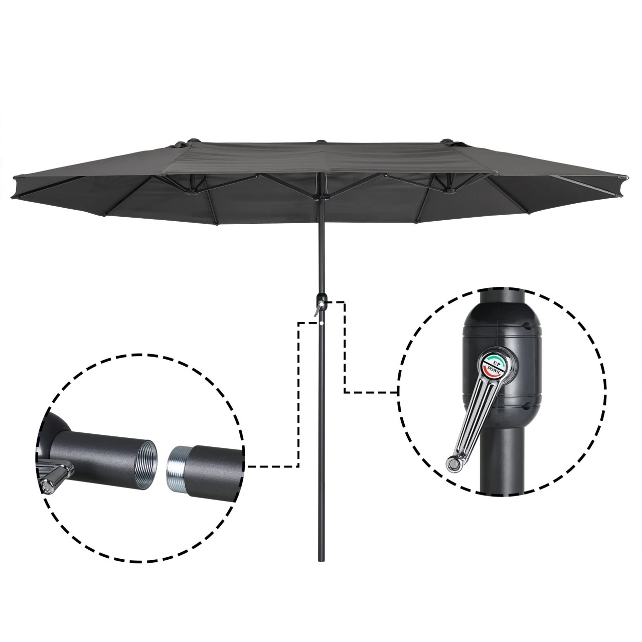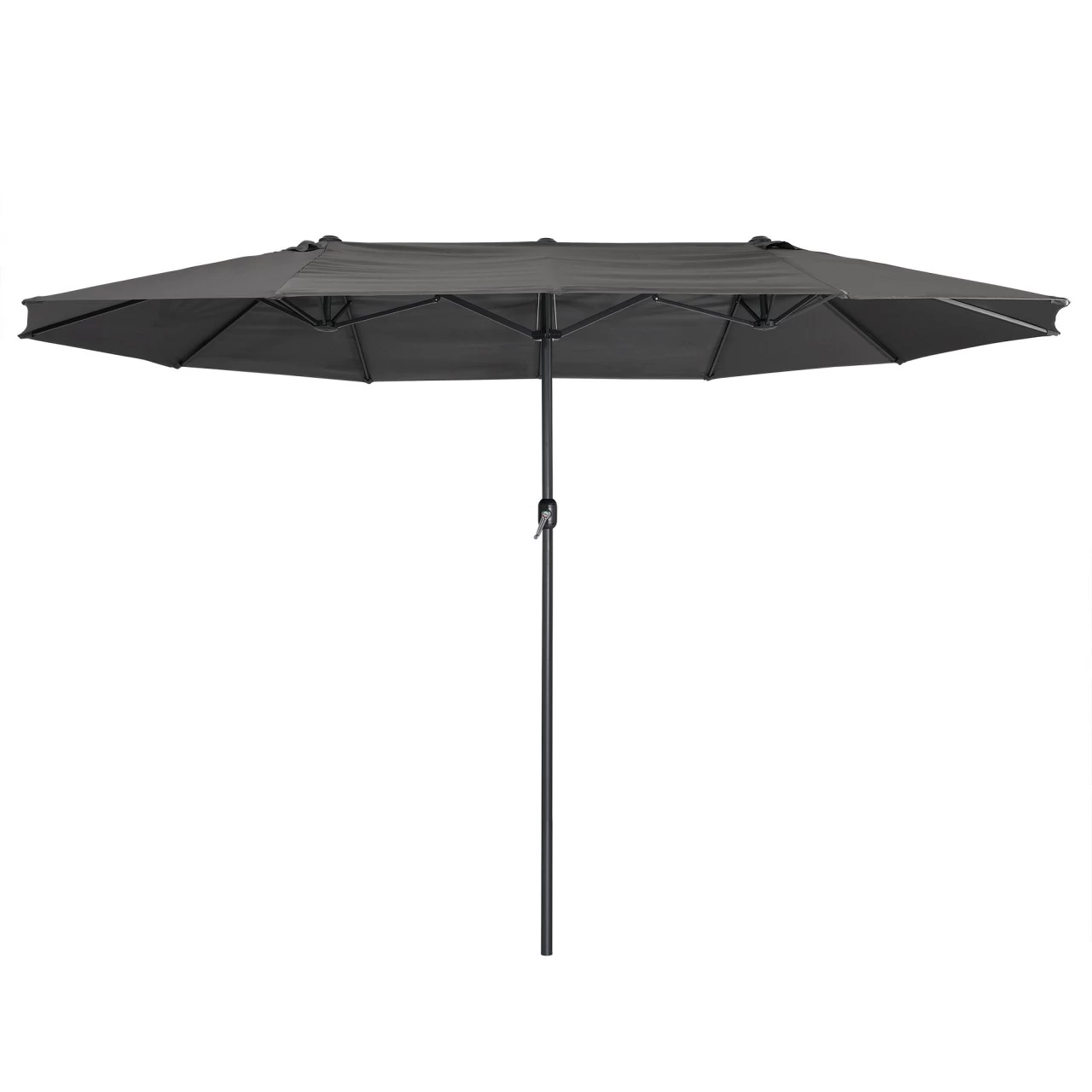 Der extra große Marktschirm ist der perfekte Begleiter für den Sommer, da er sehr viel Schatten spendet. Zudem bietet der Doppelsonnenschirm allen Gästen Platz und ist somit perfekt für eine große Grillparty. Der Sonnenschirm hat eine Größe von (B) 460 x (T) 270x (H) 245 cm und ist ca. 13 kg schwer. Der wasserabweisende Schirmbezug ist leicht und einfach mit einem feuchten Tuch abwaschbar. Dieser besteht aus pflegeleichtem 100 % Polyester. Der Mast ist teilbar und erleichtert den Auf- und Abbau des Gartenschirms. Durch die 12 Stahlstreben hat der Schirm eine hohe Stabilität. Zusätzliche Stabilität erreichen Sie durch die Verwendung eines Tisches mit Sonnenschirmhalterung oder eines Schirmständers. Der Gartenschirm hat am Mast eine praktische Handkurbel, mit dieser Handkurbel lässt sich der große Schirm einfach und schnell Auf- und Abspannen. Ideal für den Garten oder die Terrasse. Dank der Größe können Sie den Schirm auch als Marktschirm verwenden.