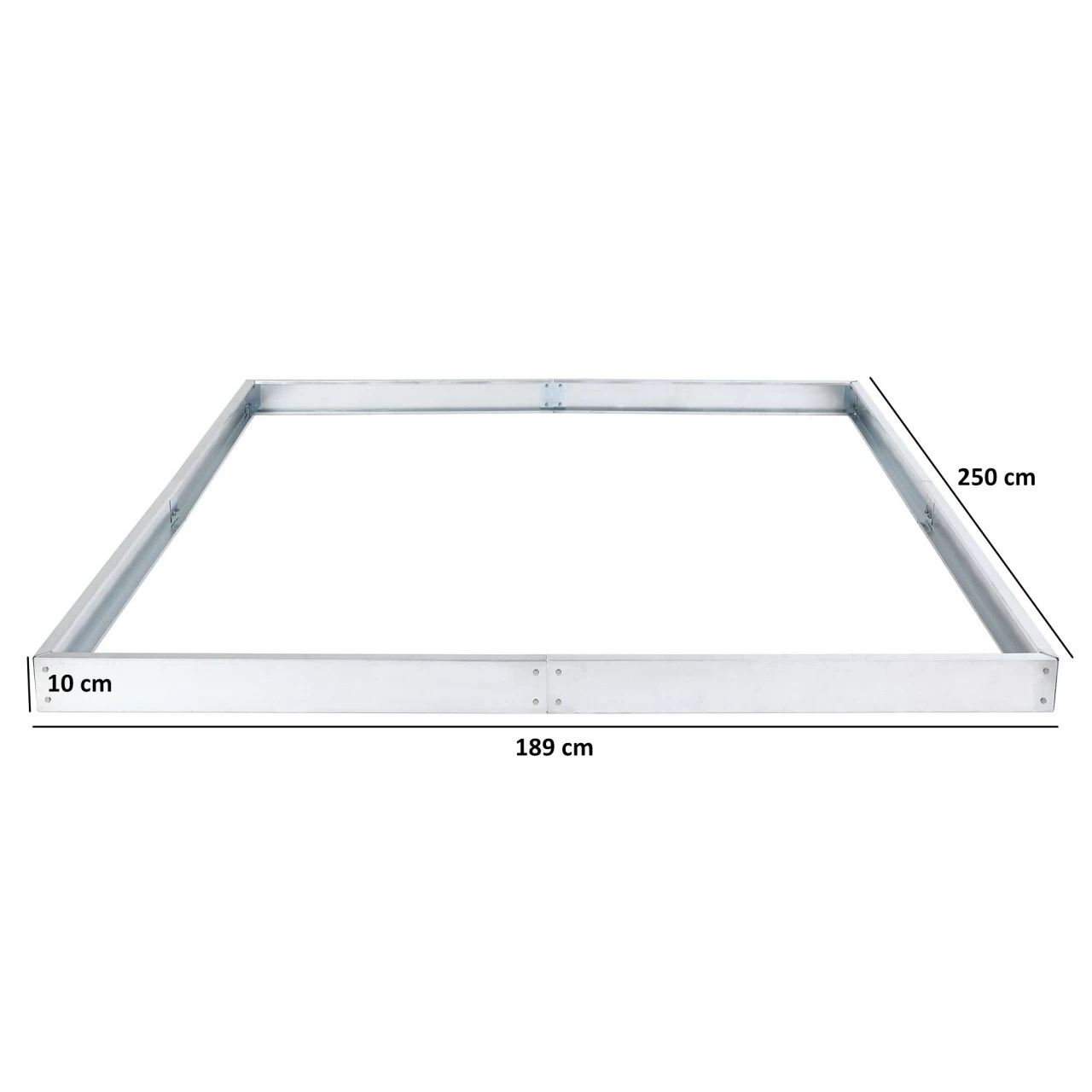 Der Stahl Fundamentrahmen verstärkt, stabilisiert und erhöht Ihr Gewächshaus. Mihilfe der, im Lieferumfang enthaltenen, Verbindungsklammern lässt sich Ihr Gartenhaus fest und sicher am Fundamentrahmen fixieren.