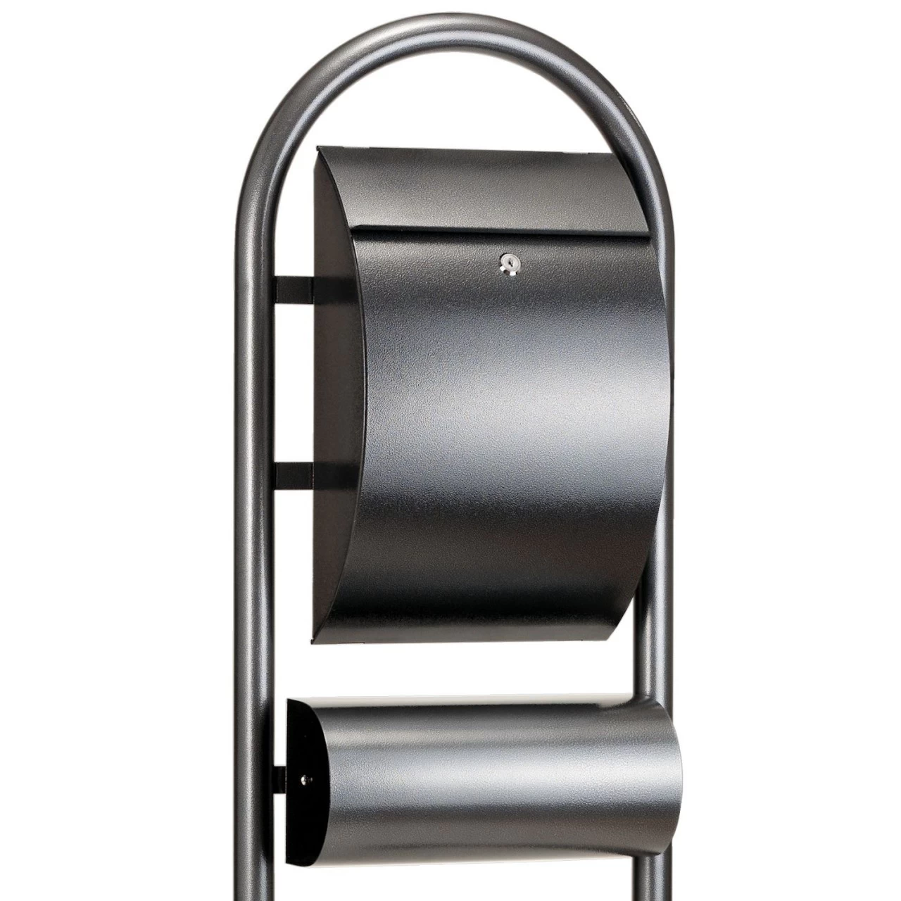 - Lieferumfang: Ständer, Briefkasten, Zeitungsrolle, Schloss mit zwei Schlüssel, acht Betondübel + Montagematerial