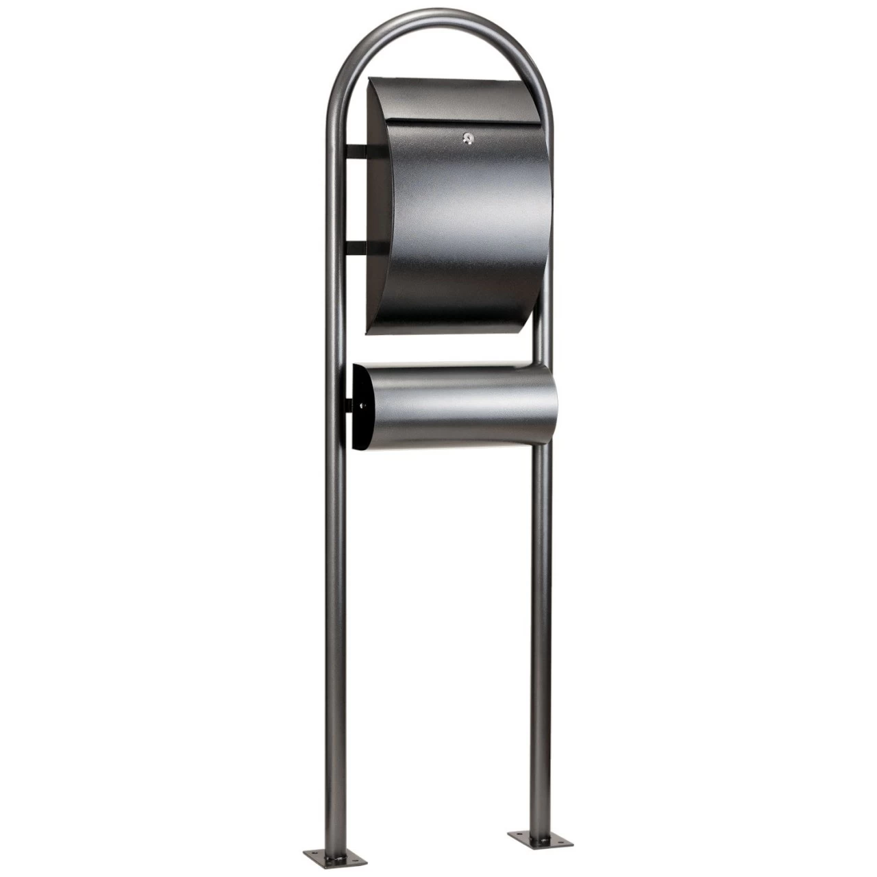 Die sichere Rundbogen Ausführung aus lackiertem Stahl, mit geschwungenem Deckel und separater Zeitungsrolle. Der elegante, in Hammerschlagoptik hergestellte, Standbriefkasten mit Zeitungsrolle bietet viel Platz für Briefe und Zeitungen.