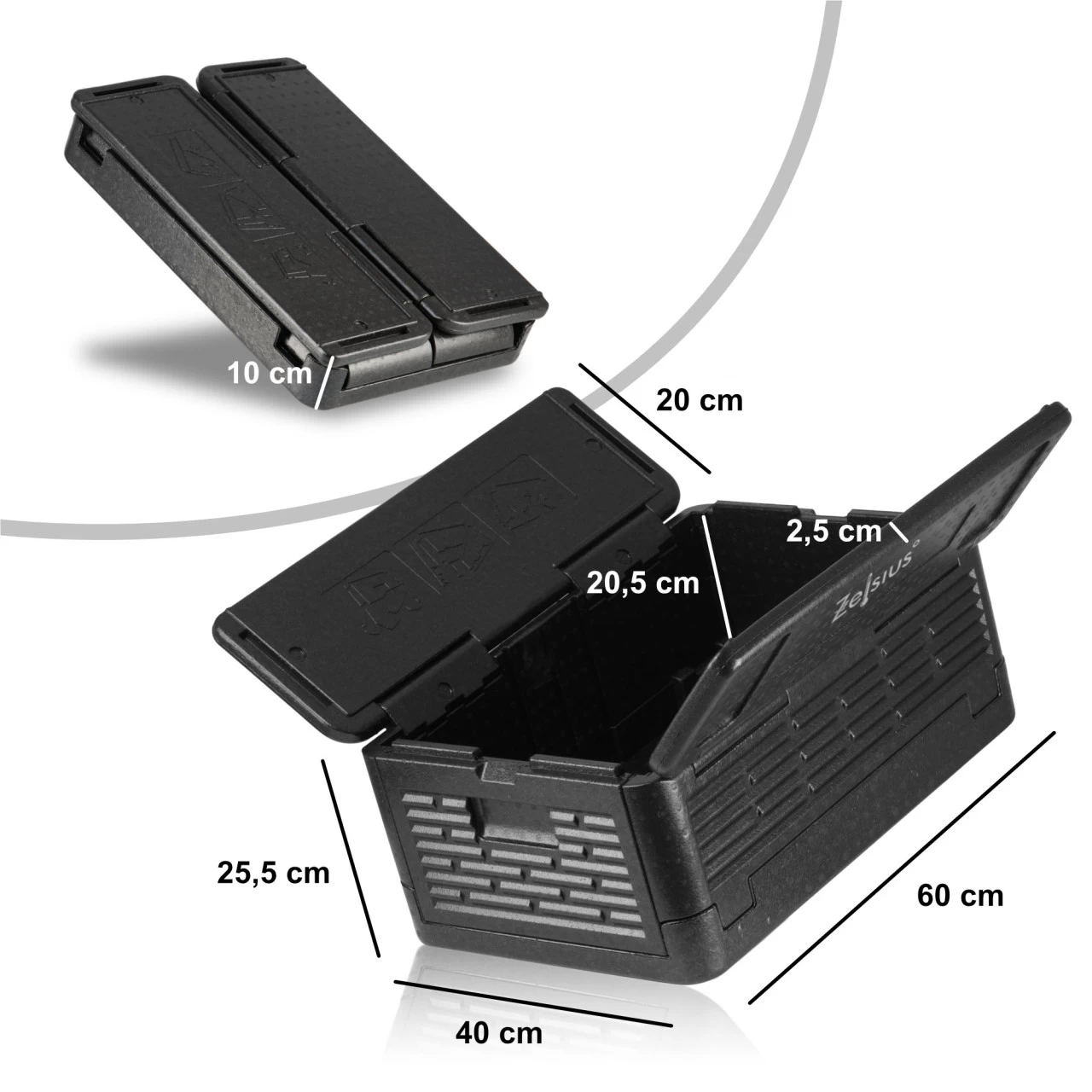 Die Wärmebox verwendet hochwertige Isoliermaterialien, um die Temperatur Ihrer Speisen konstant zu halten. Egal, ob Sie warme Gerichte, wie Pizzen oder Nudelgerichte, kalte Salate oder Tiefkühlprodukte in der Isolier-Klappbox transportieren – Ihre Speisen bleiben frisch und genießbar.