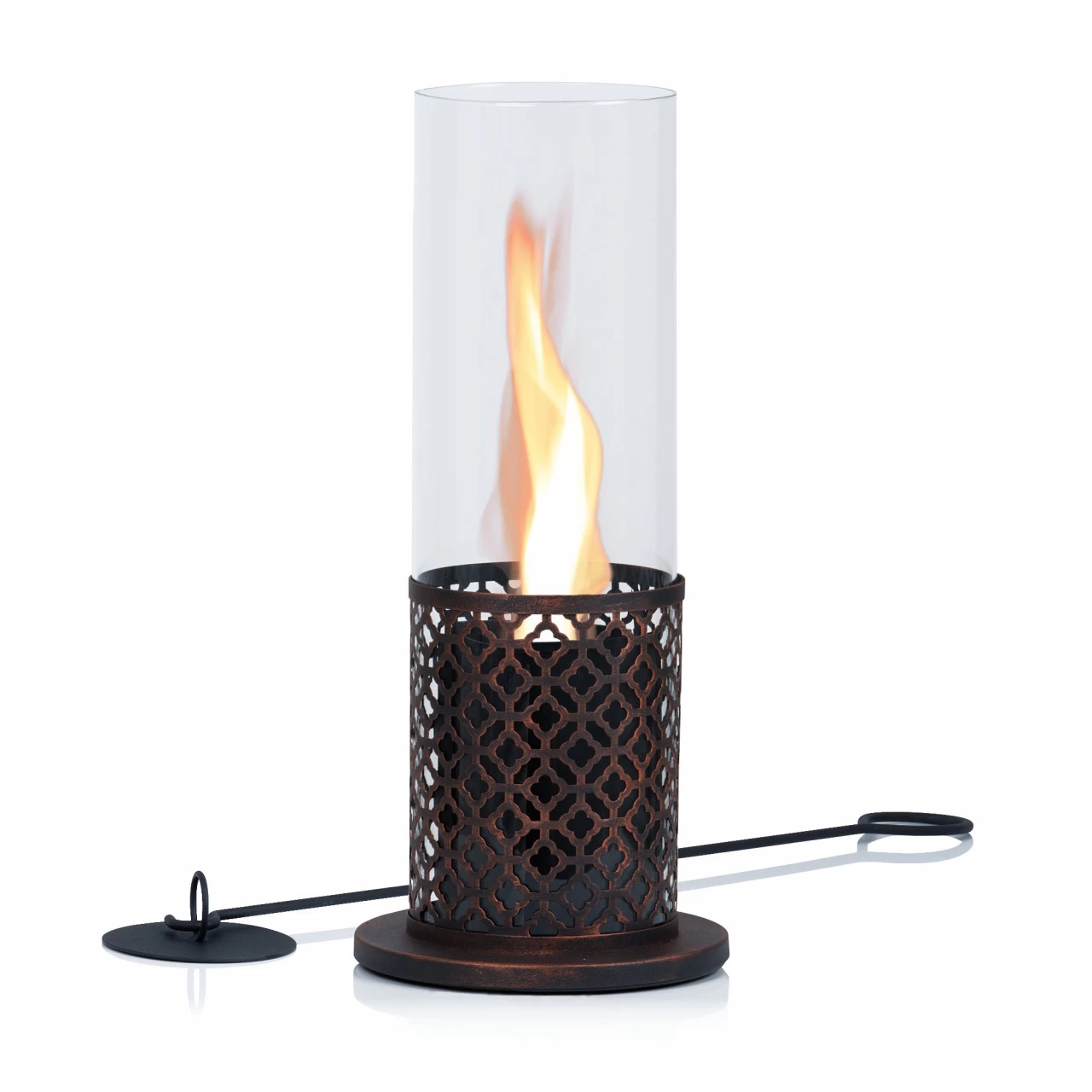 – Lieferumfang: 1x Ethanol Kamin, 1x Standfuß, 1x Glaszylinder, 1x Brennbehälter, 1x Brenner, 1x Keramikwolle, 1x Löschstab mit Löschdeckel (Bio-Ethanol nicht im Lieferumfang enthalten)