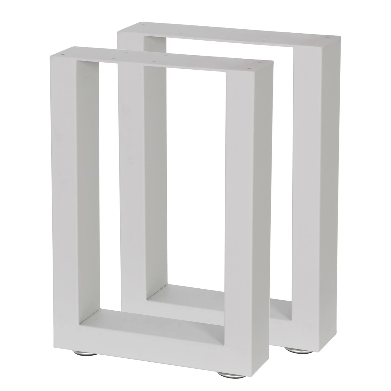 Das Tischgestell aus hellgrau lackiertem Stahl liegt voll im aktuellen Design Trend. Die hochwertig verarbeiteten Kufen sind aus stabilen Vierkantprofilen gefertigt. Auf der oberen Schiene befinden sich Befestigungslöcher zum Aufschrauben der Tischplatte. Entsprechende Schrauben liegen dem Lieferumfang bei.