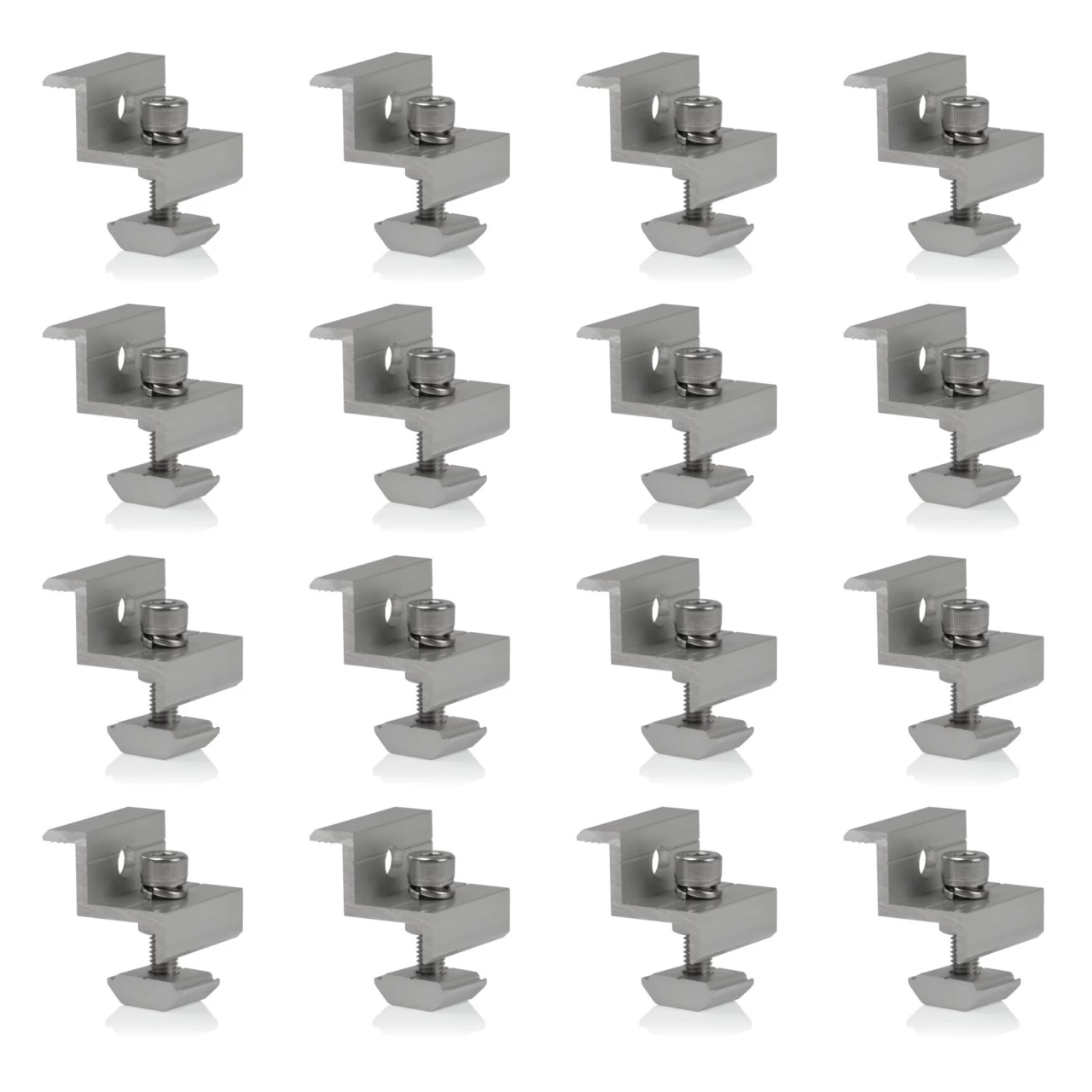 Die verstellbare Klemme lässt sich durch einfaches Auf- und Zuschrauben in Ihrer Größe von 0 bis 1 cm anpassen und liegt damit immer optimal an den PV-Modulschienen an. Die Klemme ist verstellbar und somit individuell anpassbar und eignet sich für Solarschienen mit einer Breite von 2,5 cm.