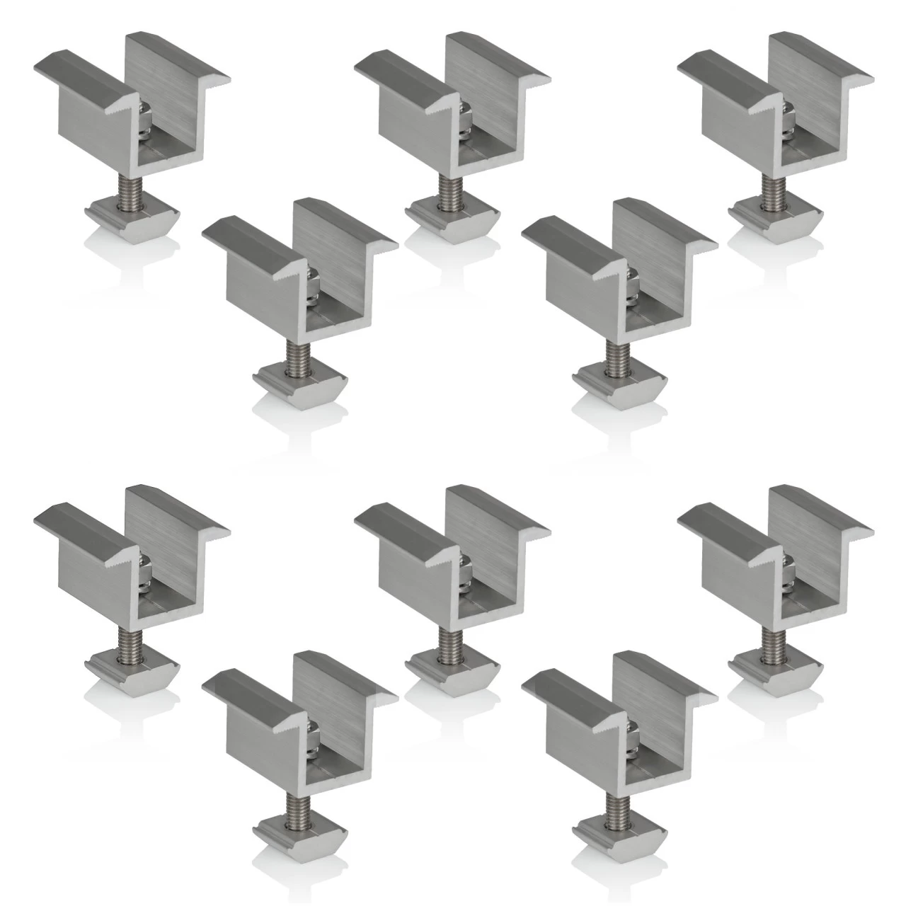 Die verstellbare Klemme lässt sich durch einfaches Auf- und Zuschrauben von 0 bis 2,3 cm in ihrer Größe anpassen und liegt somit immer optimal an den PV-Modulschienen an. Die Klemme ist verstellbar und somit individuell anpassbar und eignet sich für Solarschienen mit einer Breite von 2,5 cm.