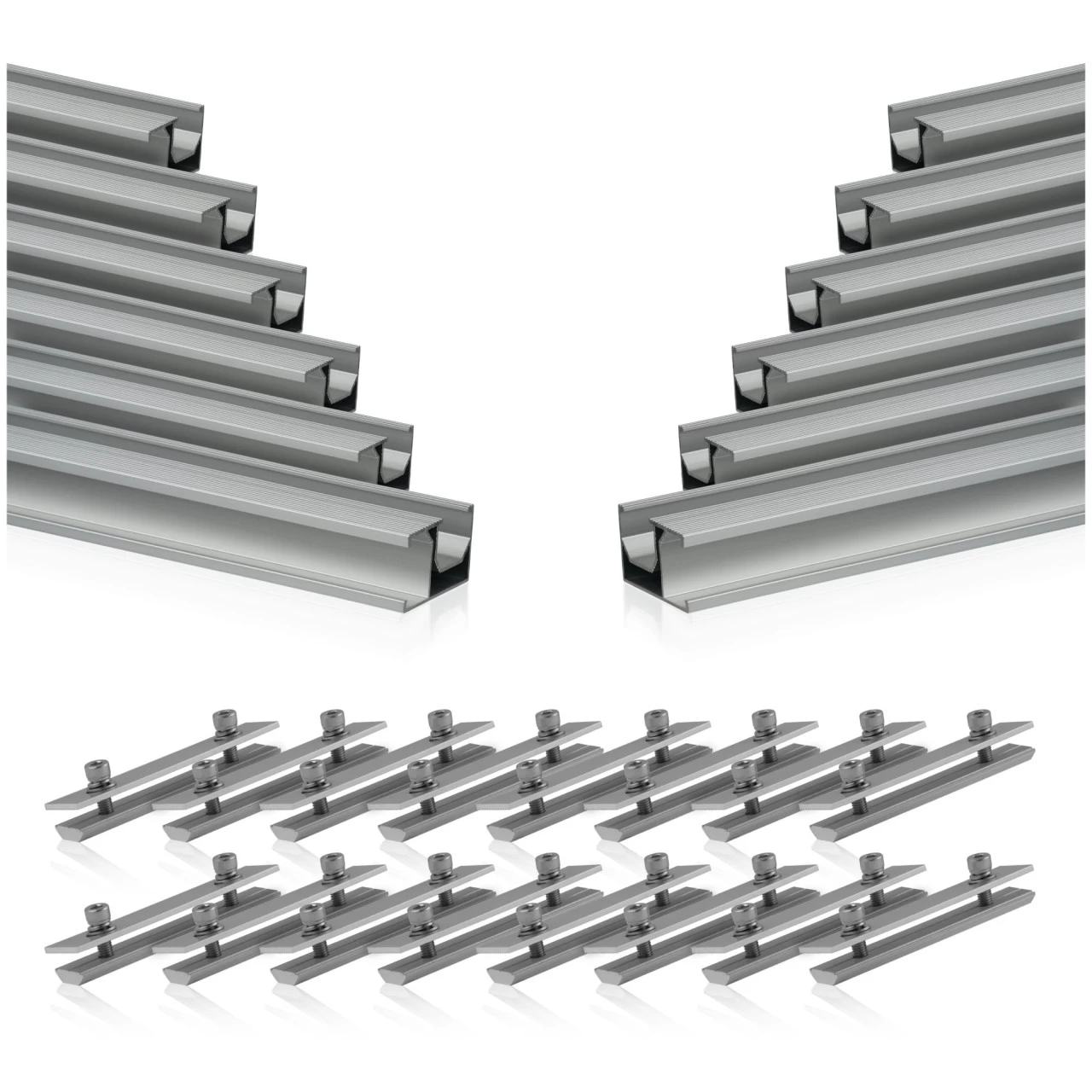 – Lieferumfang: 12x Montageschiene, 16x Profilverbinder