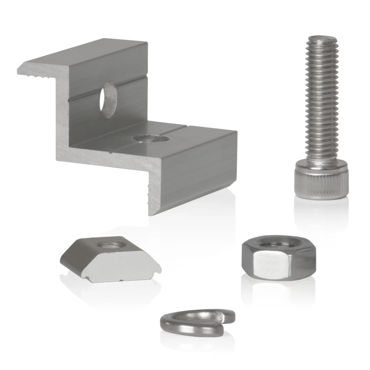 Da die Solarmodulverbindung ein wichtiger Bestandteil von Photovoltaik-Anlagen ist, bestehen die Solarmodulträger aus Aluminium. Somit ist das System rost-, korrosions- und UV-beständig. Jedes Modul lässt sich mithilfe der Schrauben schnell und einfach auf Ihren Solarschienen montieren.