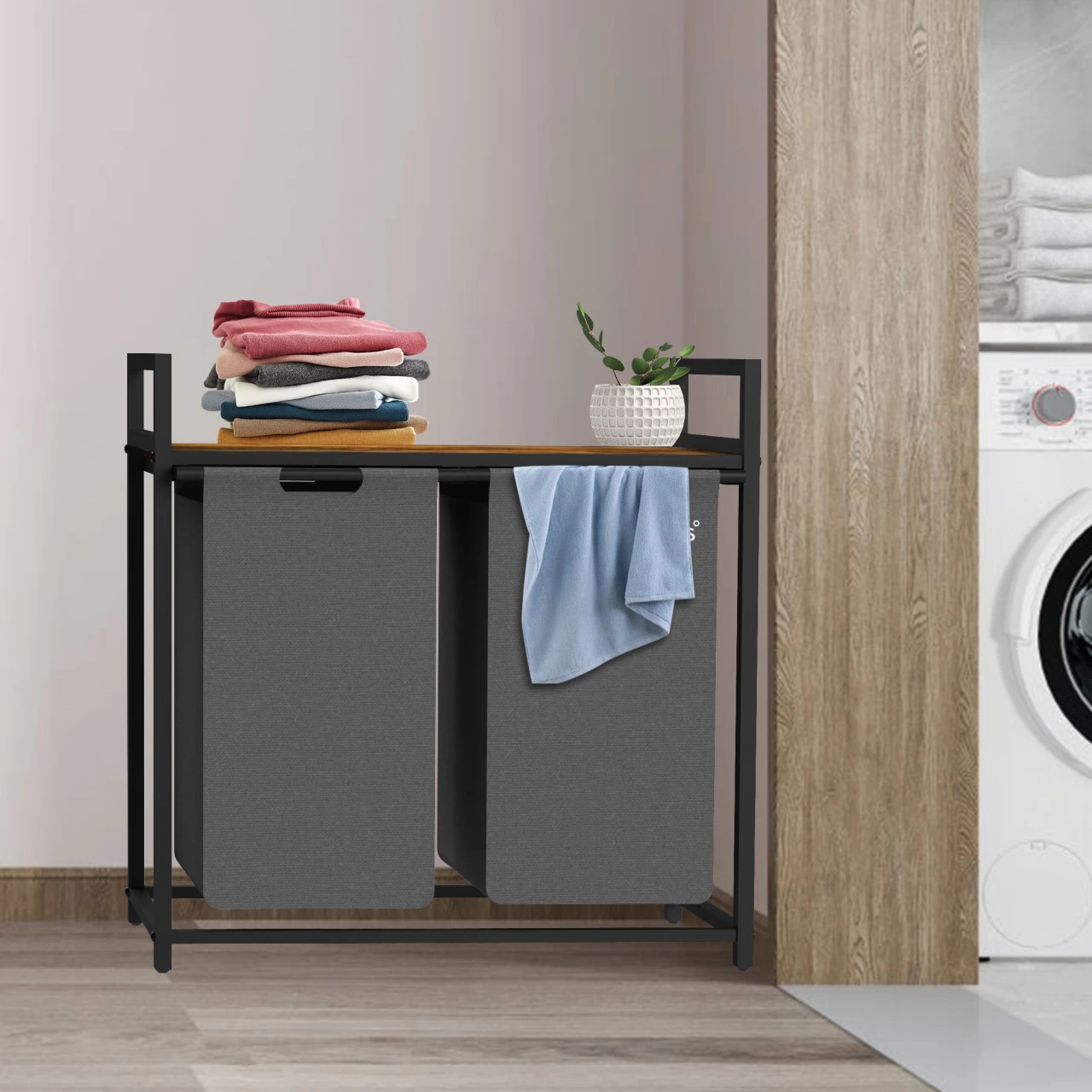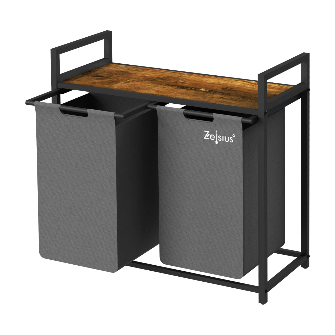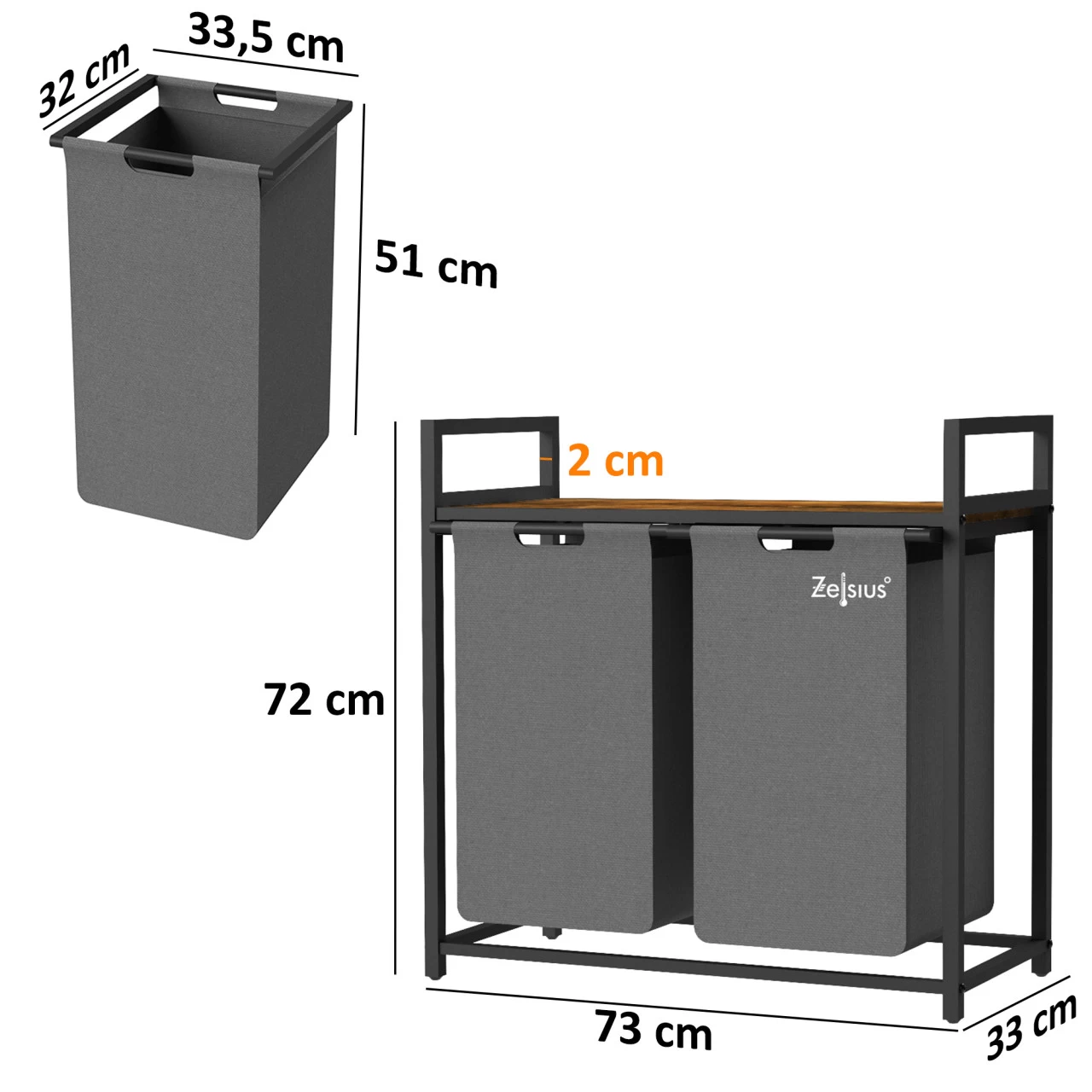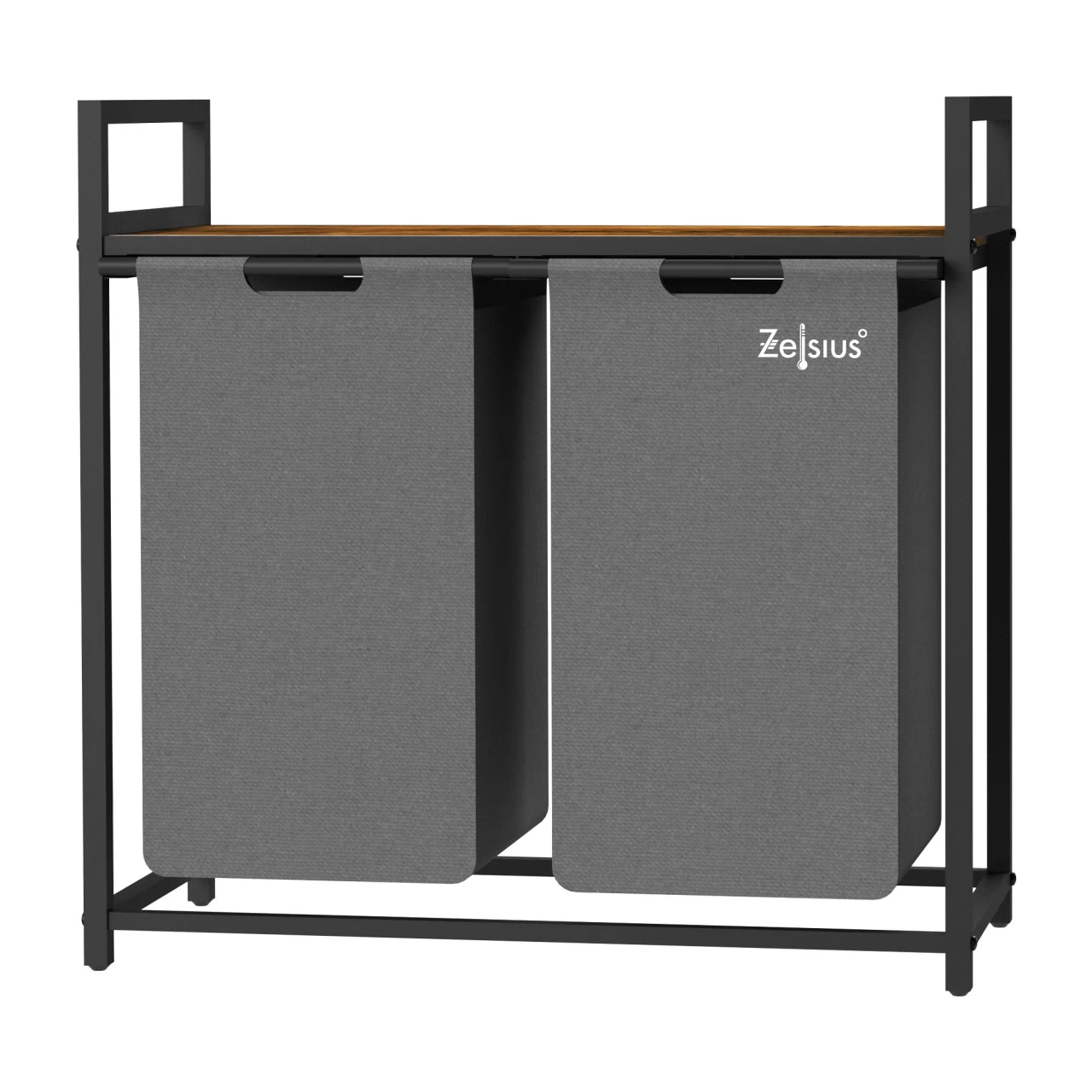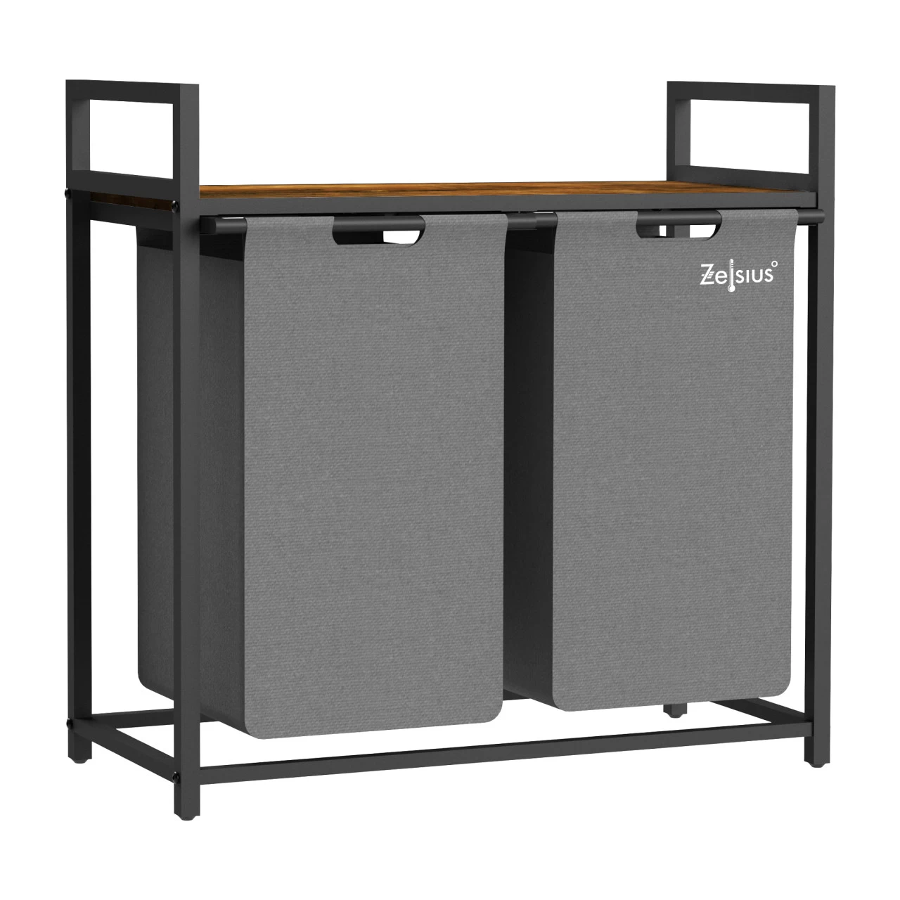 Der Zelsius Wäschesammler mit Ablage ist die ideale Ergänzung für Ihr Badezimmer, Ankleidezimmer oder Schlafzimmer. Dank der beiden ausziehbaren Behälter können Sie schmutzige Kleidung, Bettwäsche und andere Textilien separat sortieren und aufbewahren.